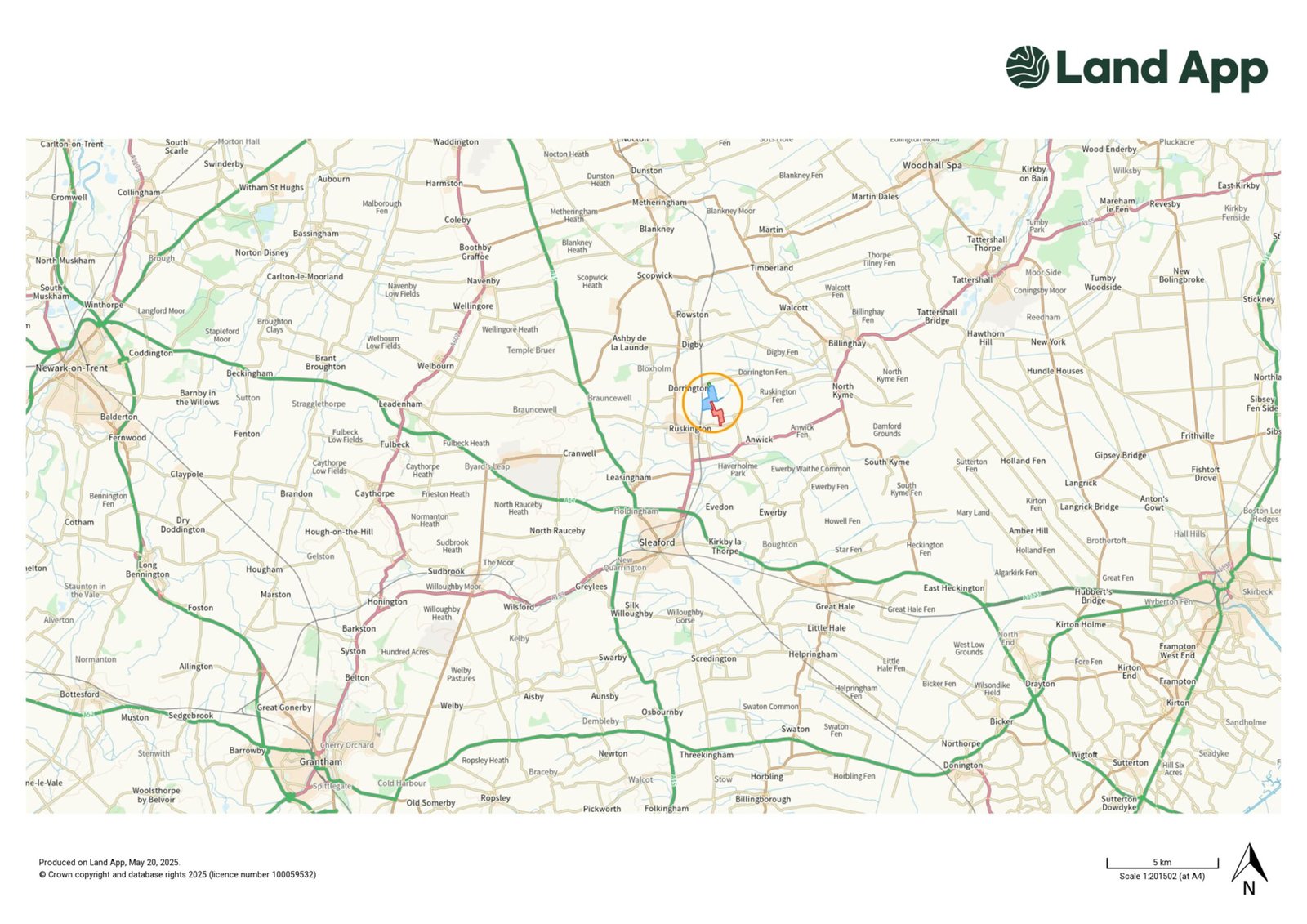 The land is located to the east of the villages of Ruskington and Dorrington, lying to the south of Fen Road, Dorrington and to the north of Fen Road, Ruskington. The land is situated to the immediate east of the Sleaford to Lincoln railway line.