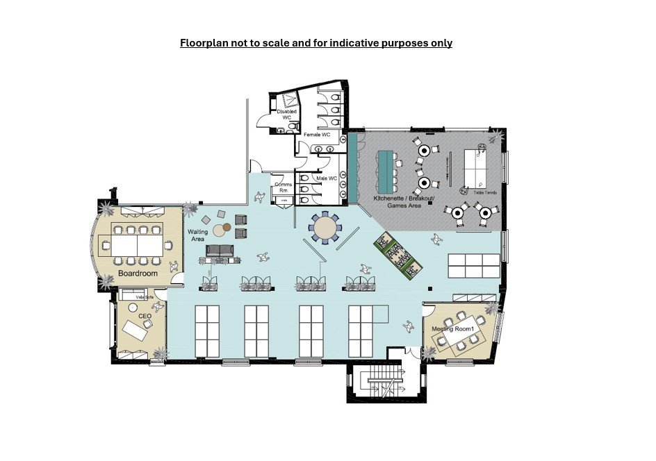 The suite is situated on 1st floor and provides high specification open plan fitted office accommodation and benefits from full height windows providing good levels of natural light.