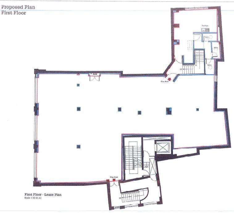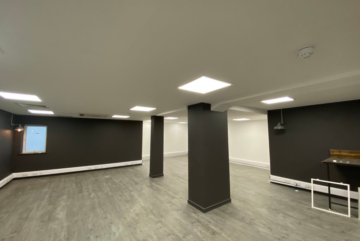The first floor provides an open plan air-conditioned office with its own dedicated street entrance and a separate ground floor meeting room/storage area.