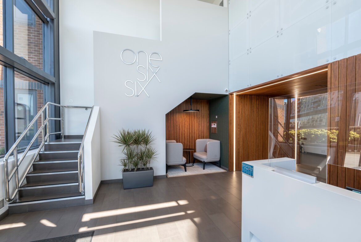 The OneSixSix Building is one of the best specified office buildings in Harrow, having been fully refurbished in 2016, the building provides contemporary office space with an impressive security reception, generous parking, 2 x 10 person passenger lifts and wc/shower facilities on every floor.