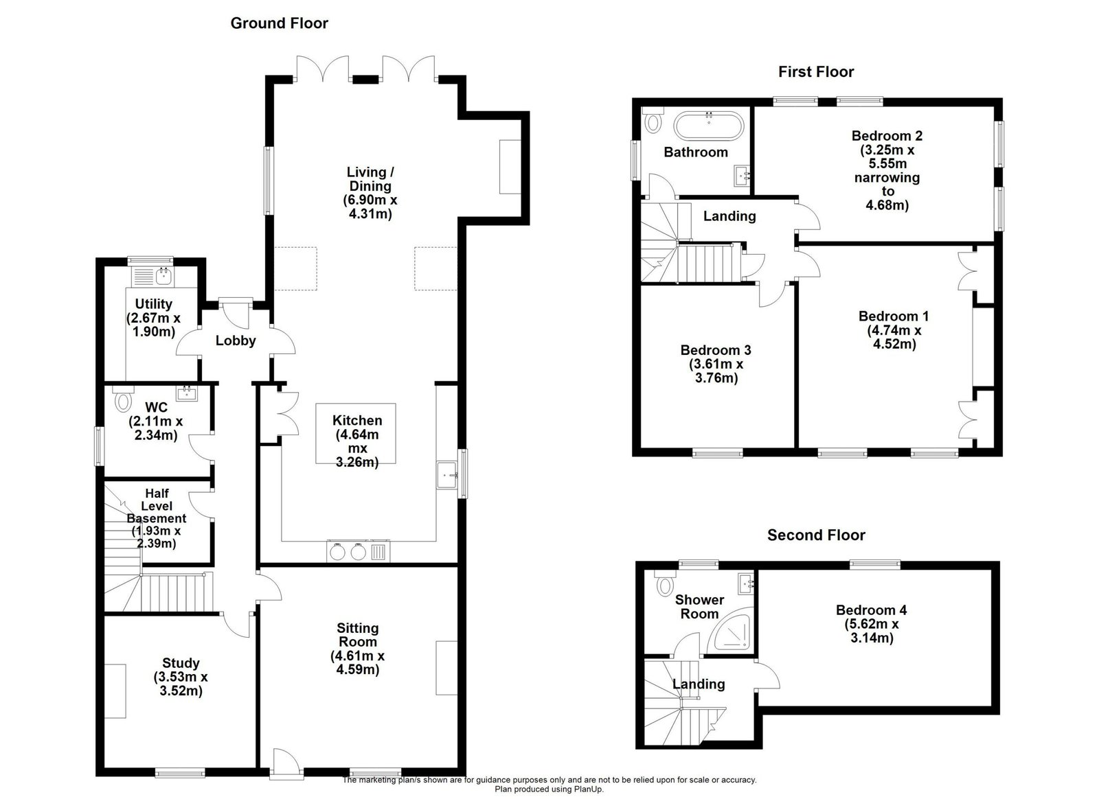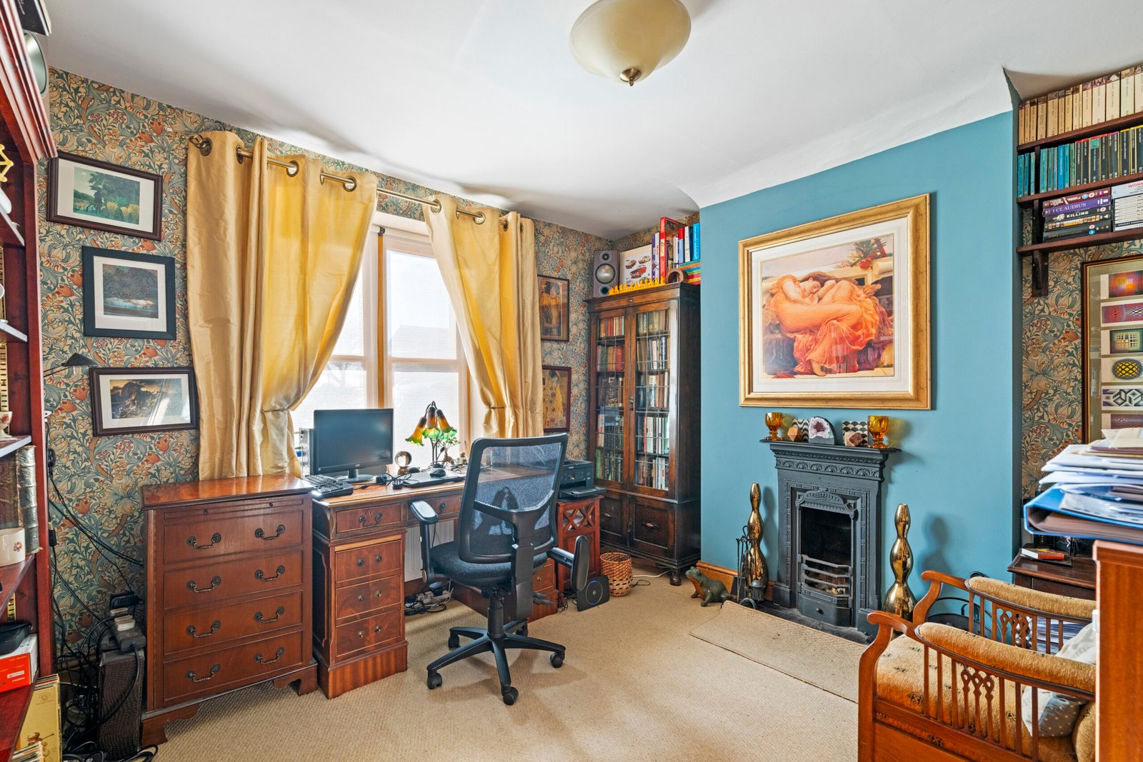 Inside, the house boasts unique period detailing throughout with the addition of a stunning, modern extension to the kitchen with a cathedral vault which provides the heart of this lovely family home and a perfect entertaining space. The ground floor also offers a utility, beamed cloakroom, a separate formal sitting room with feature fireplace and a study. Upstairs, on floors two and three, you will find four, generous, double bedrooms complemented by one bathroom and one shower room.
