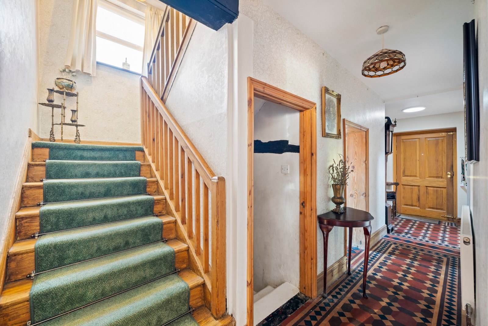 Entrance door leading to rear garden, radiator, steps down to boot room, original tiled flooring.