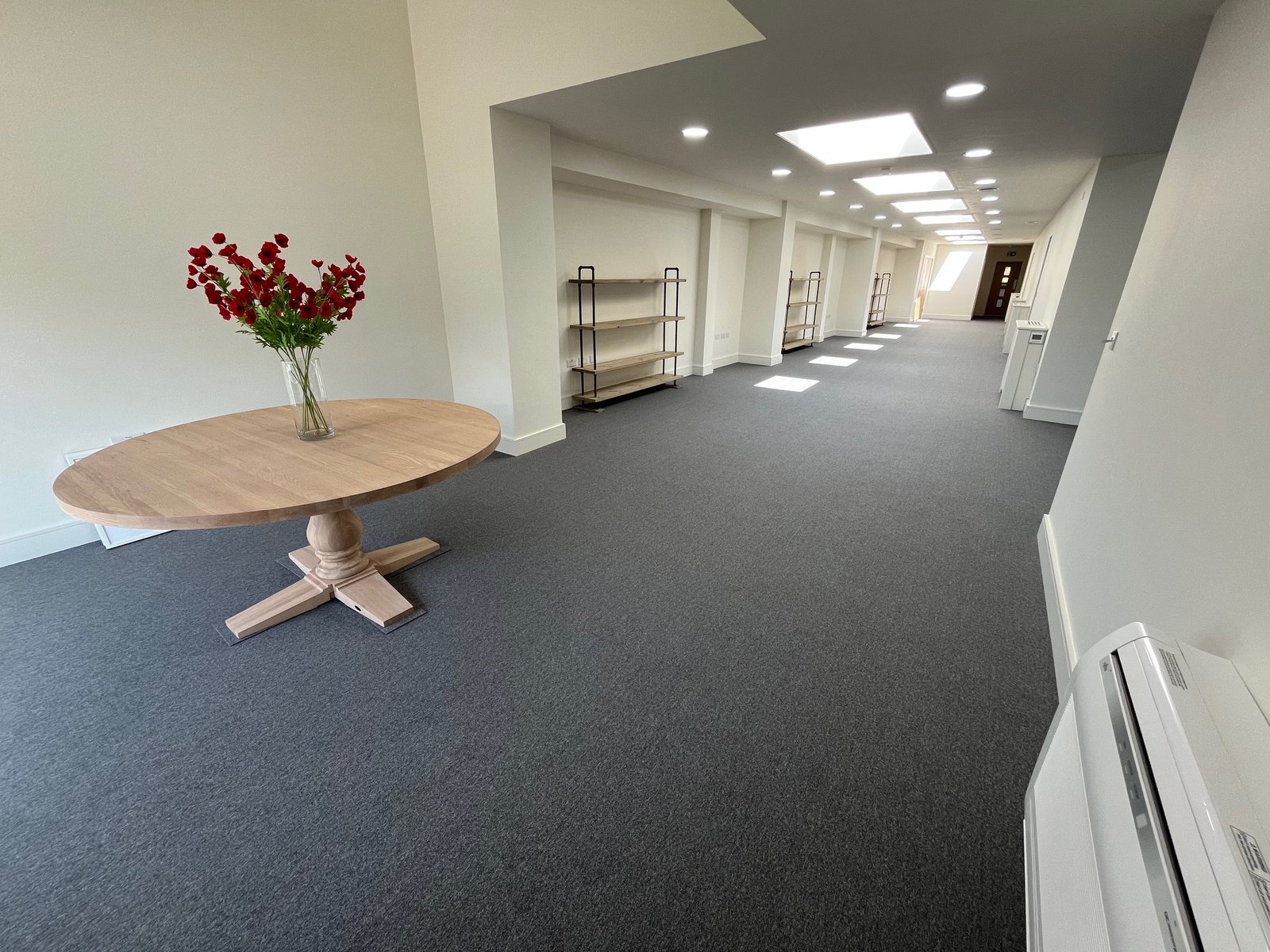The office offers predominantly open-plan accommodation, with separate office/meeting rooms and a welcoming reception area. Key features include LED lighting, high-speed fibre broadband options (BT and Virgin), tastefully designed kitchenettes and WC facilities, an integrated alarm system, and carpeting. The office also benefits from concealed low level heating and cooling units powered by external air source heat pumps. Throughout the refurbished space, subtle design elements reference the building’s legacy.