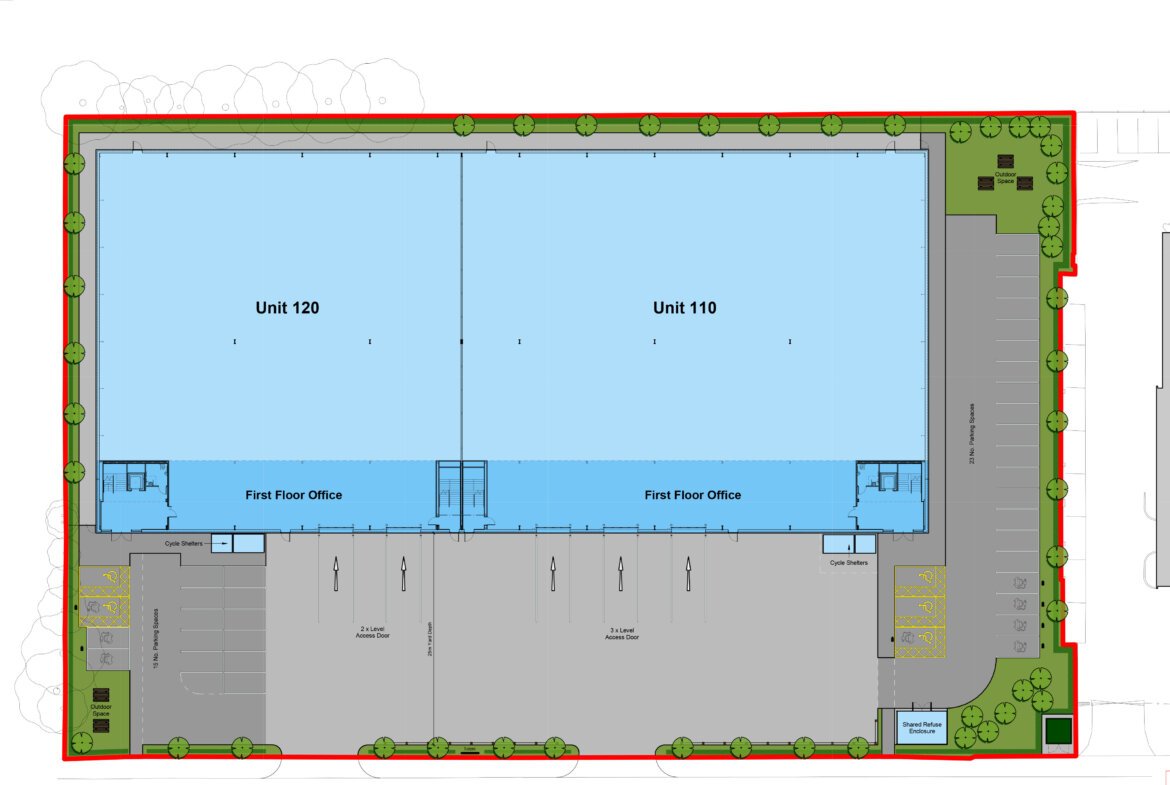 The site offers a 2.23 acre rectangular parcel of land with detailed planning consent for two semi-detached buildings totalling 57,199 sq ft GEA for use within Class B2/B8.