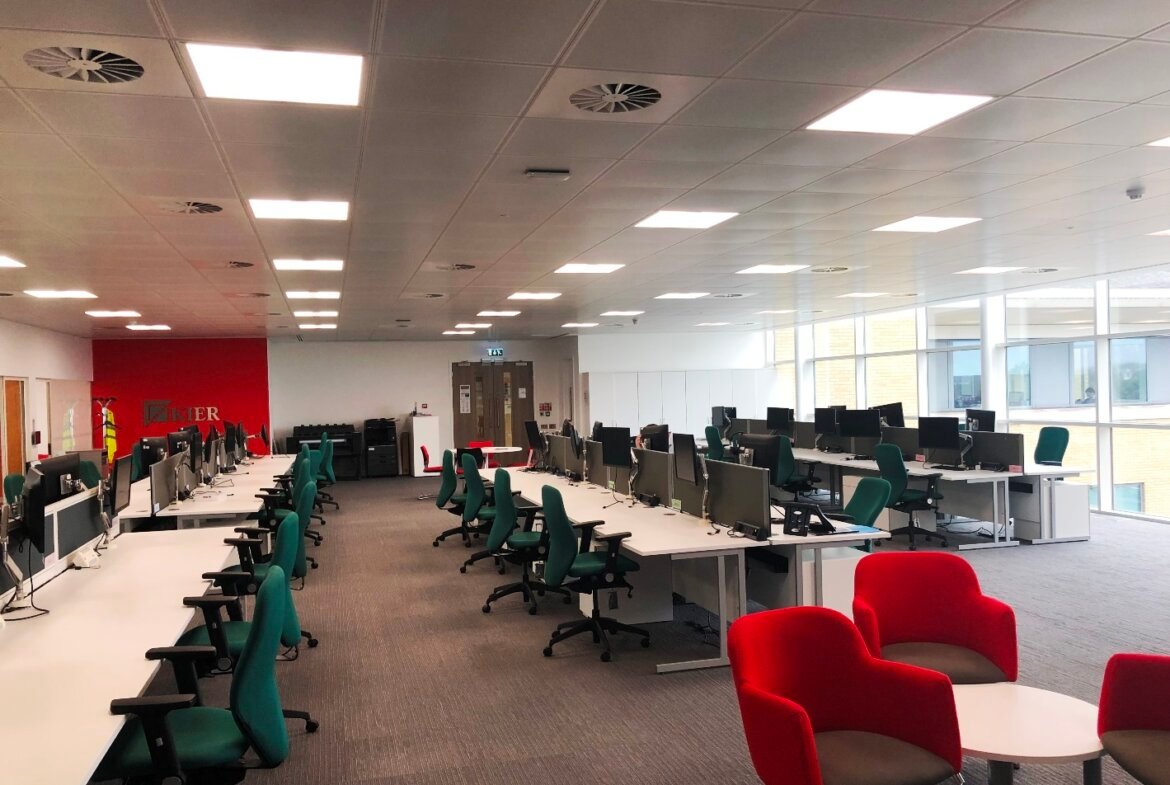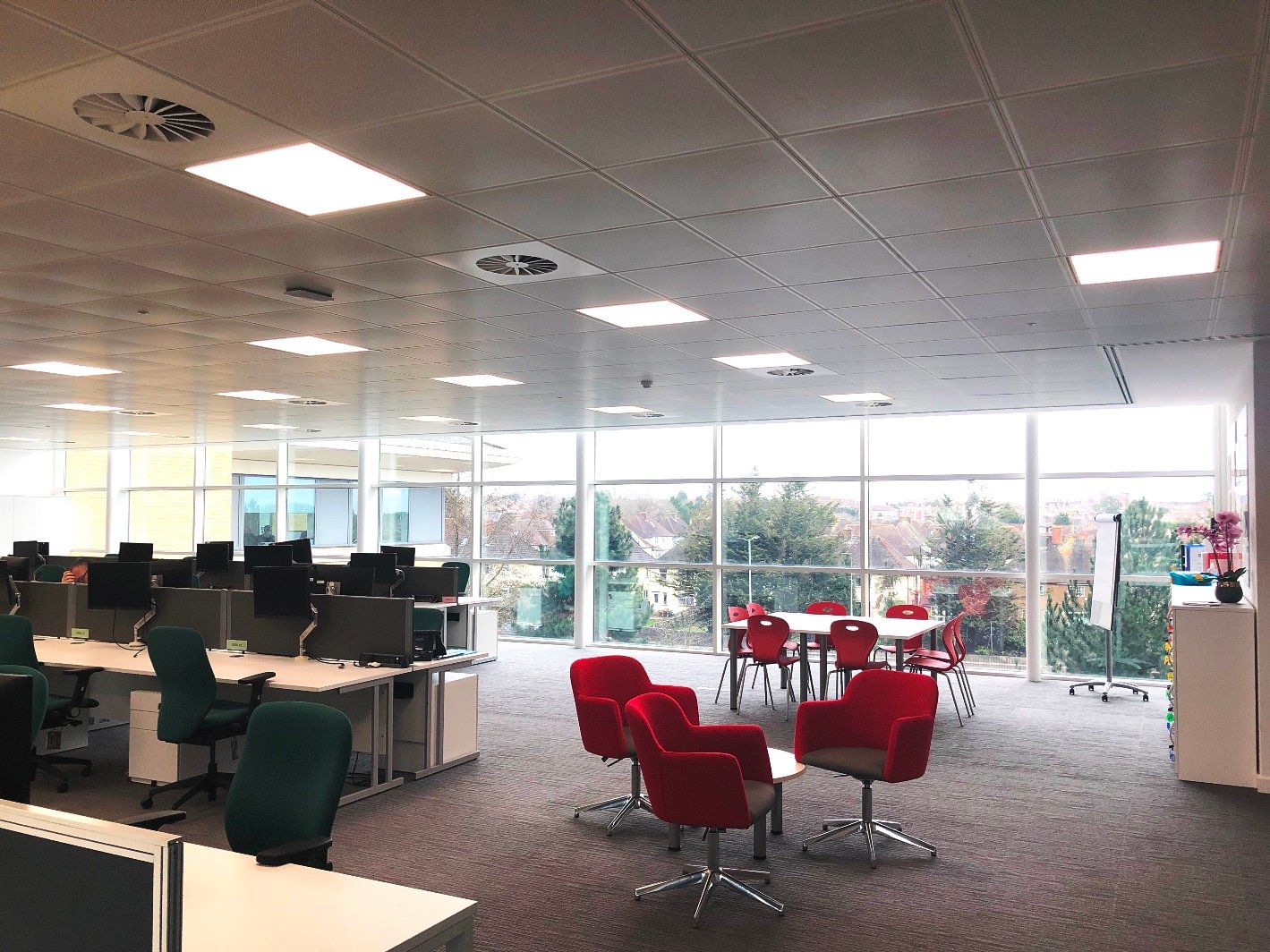A prominent, landmark office campus of 115,000 sq ft which benefits from a fabulous double height reception and business lounge with a stunning cafe facility, impressive entrance and hard & soft landscaping. There are 20 electric bikes for use by the tenants and runs a shuttle bus service to the train station & town centre. The available suite comprises a full fitted part 2nd floor suite totalling 3,444 sq ft with use of 11 car parking spaces.