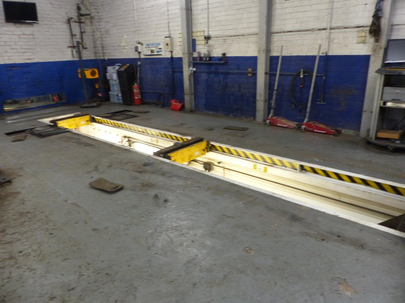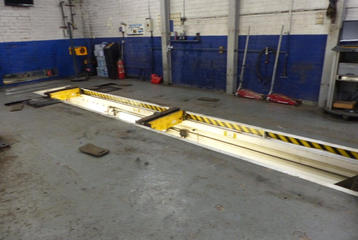 Fitted with three service ramps and MOT pit plus tyre balancing machine.