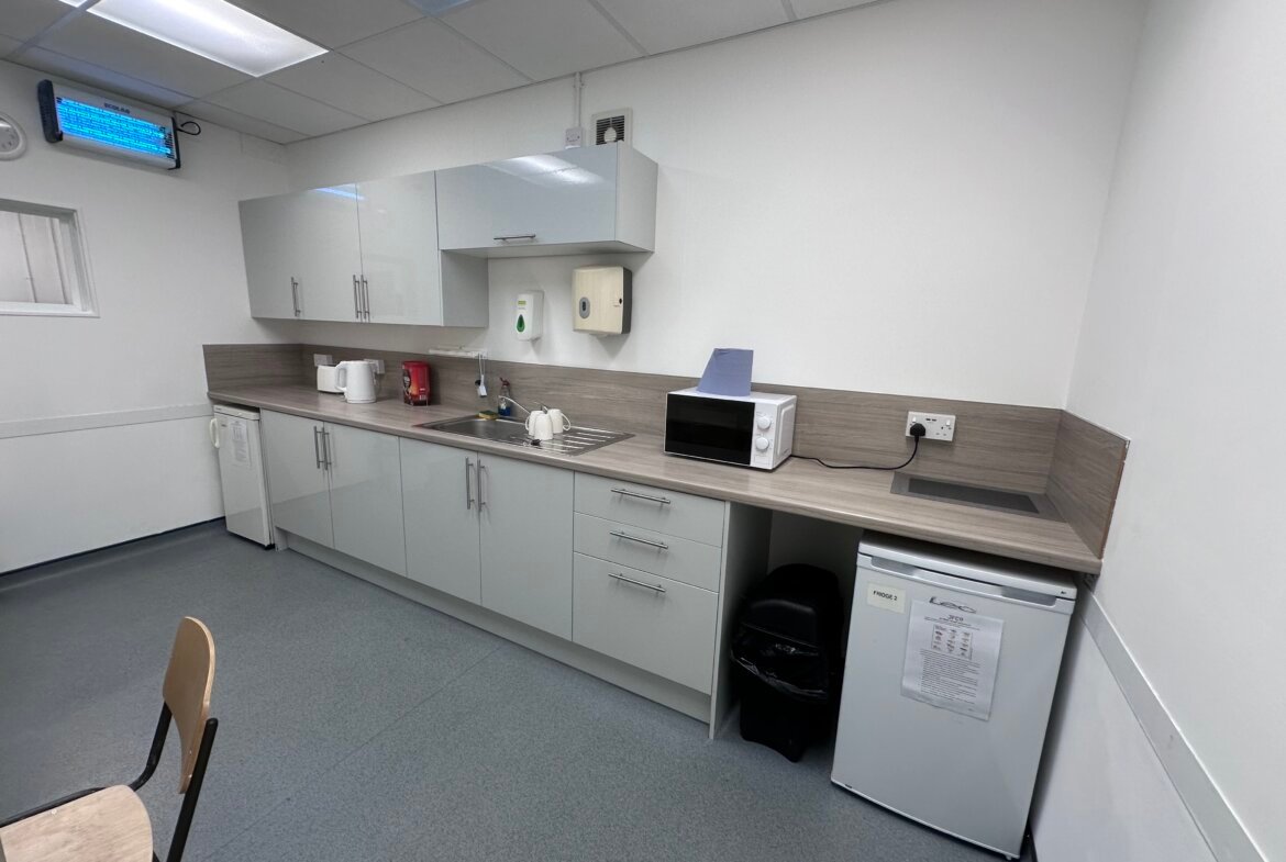 The accommodation is presently sub-divided to provide a warehouse/production area with adjoining areas which could be incorporated to provide a larger area, if required, together with dispatch/loading area, with an automated dock level access door, together with two ground level access doors. There are good quality ancillary offices, kitchen, staff changing and WC's, including a shower. The property further benefits from comprehensive fire/security alarms, PV solar panels to the roof and a large 600KVA electrical supply. There is a large plant room to the side elevation together with an EV charger.