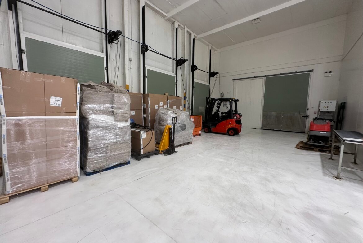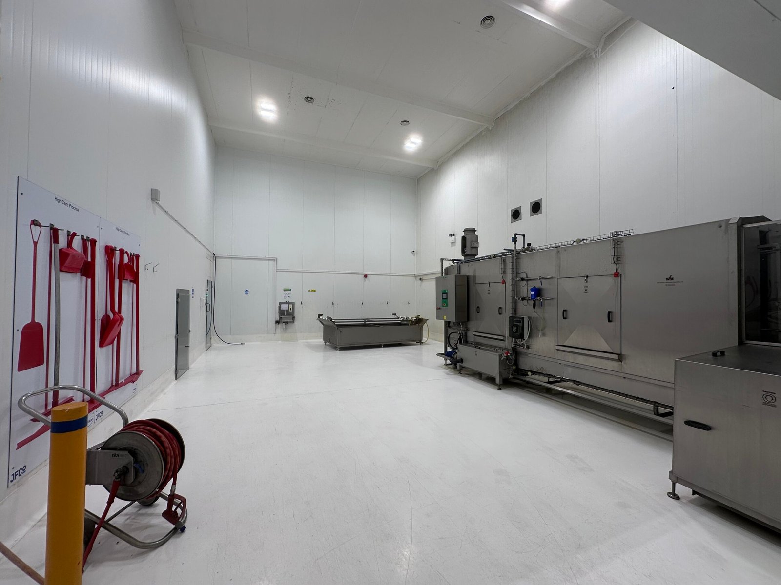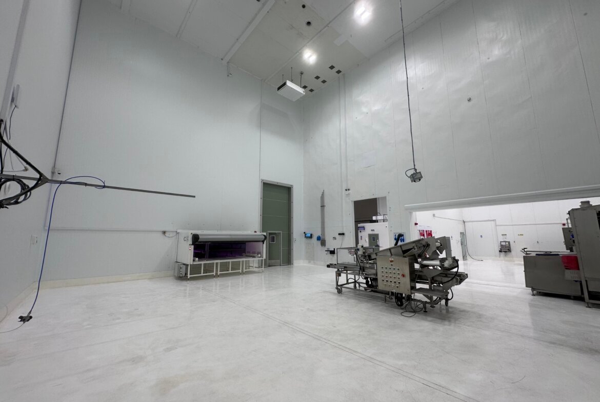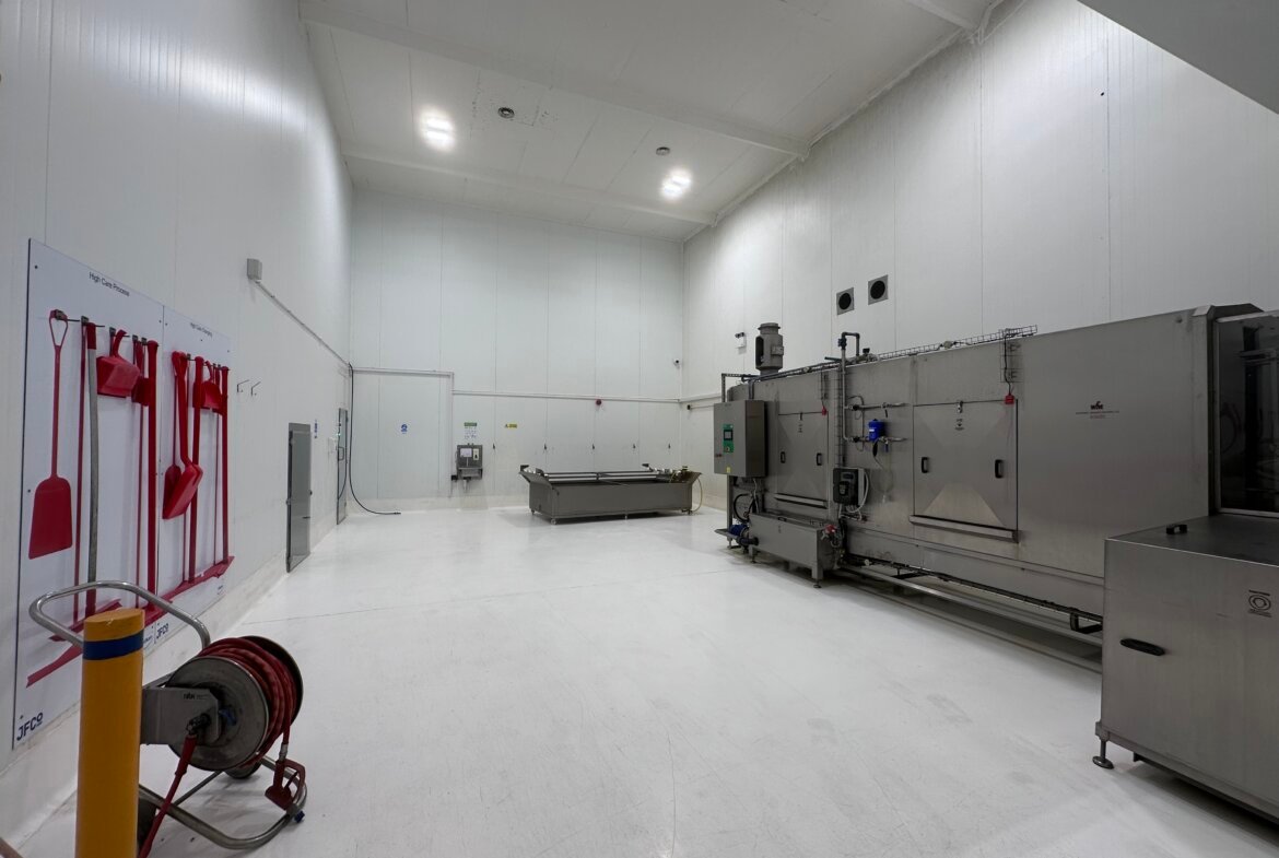 The property was originally constructed as a cold store approximately 25 years ago, being of steel portal frame construction with an eaves height of approximately 11.7 metres. The property was extensively refurbished and modernised in recent years including the construction of an extension. Most walls/ceilings are white hygiene panelled, there is also certain floor drainage and the accommodation benefits from LED lights.
