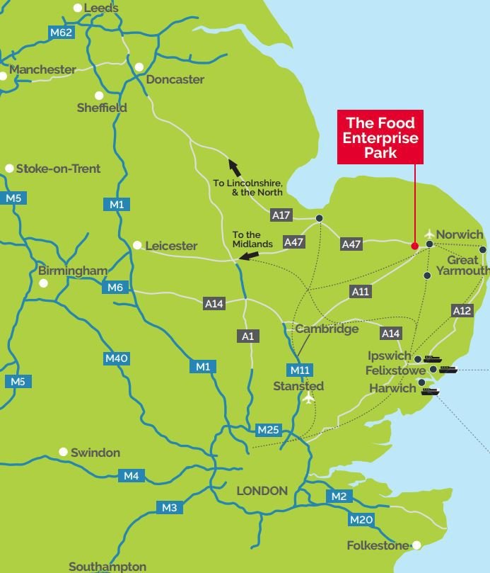 - 100 acre development site within the Greater Norwich Food Enterprise Zone
