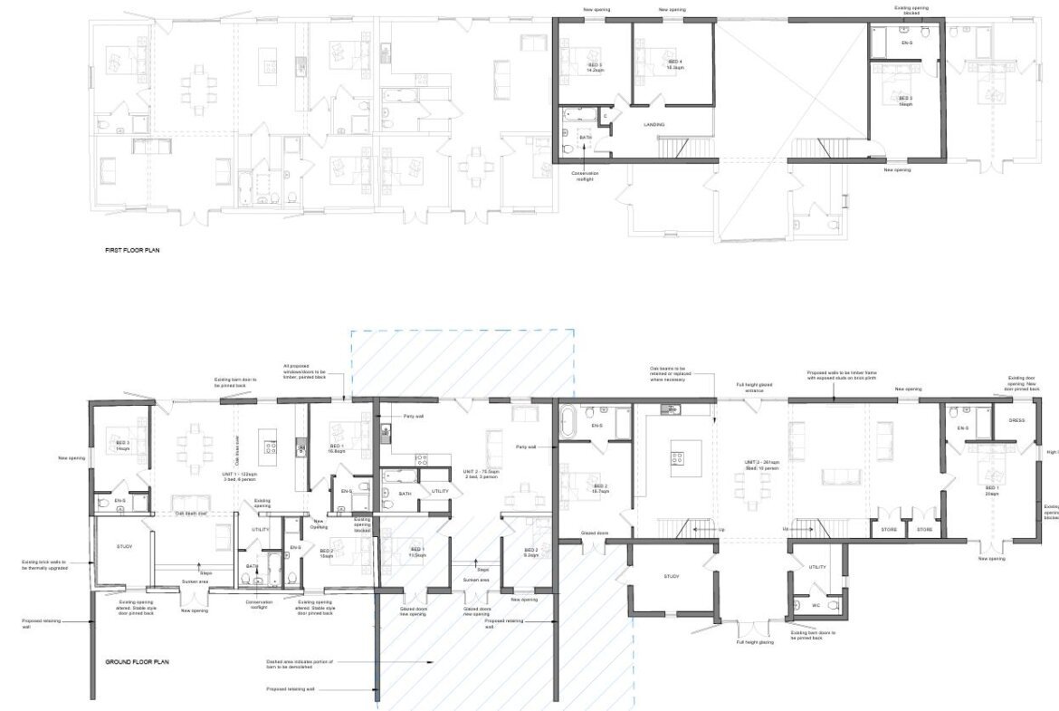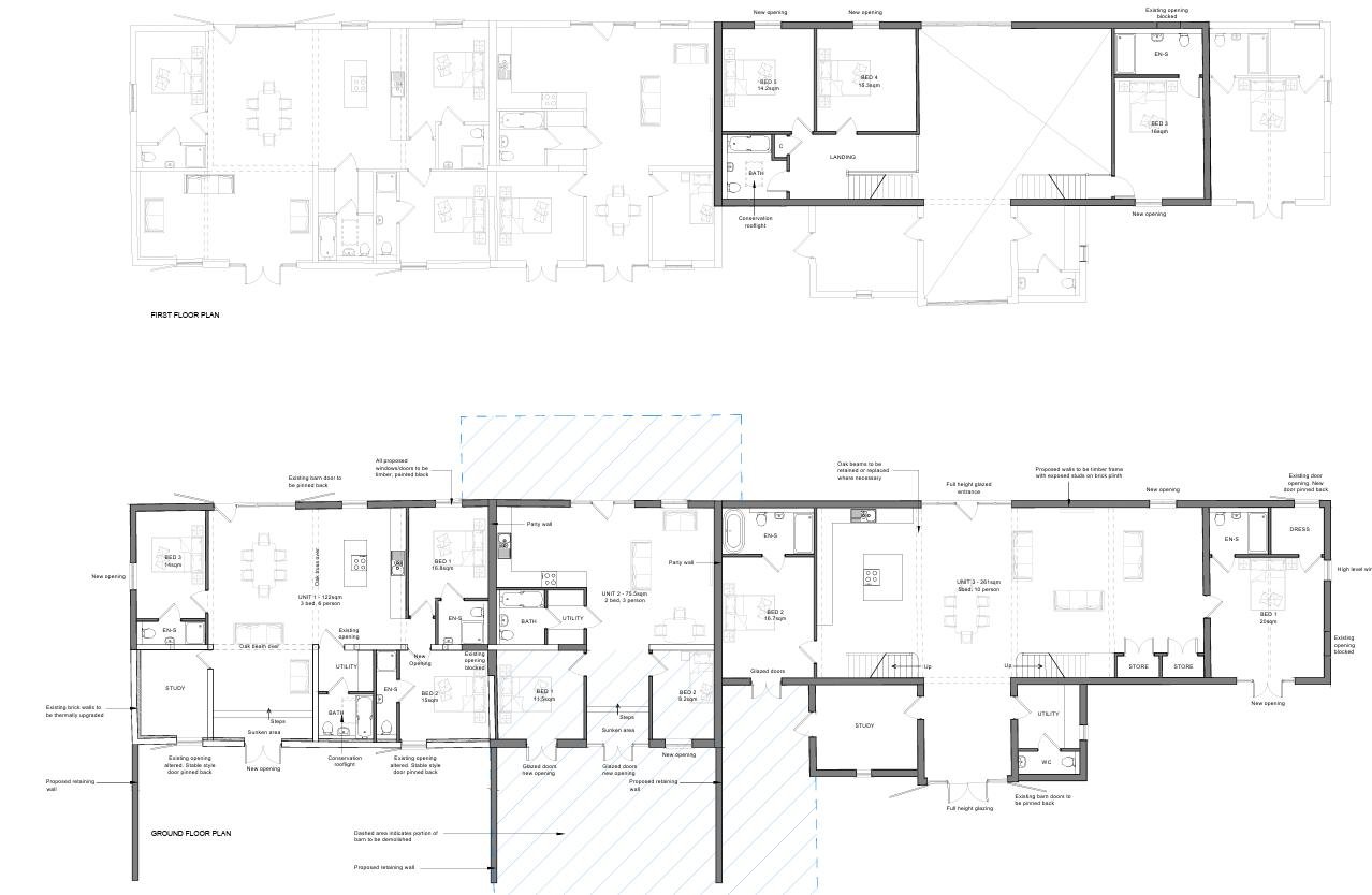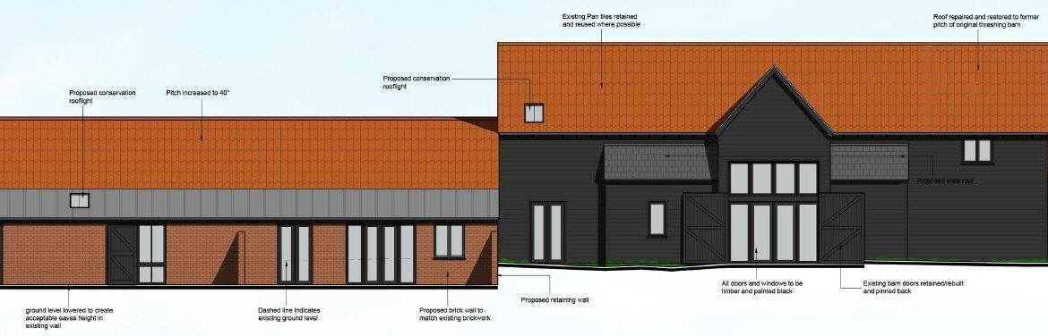 - Full planning permission granted for the conversion of existing barn into 3 dwellings and 2 new dwellings