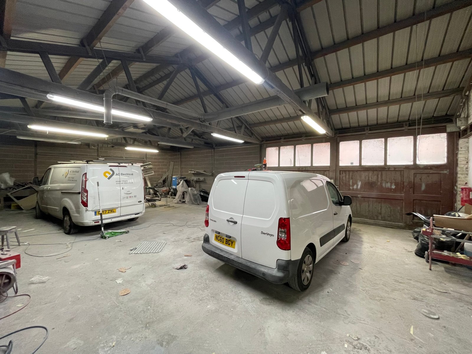 In relation to the main bay there is a vehicle access door and additional pedestrian doors to the building itself