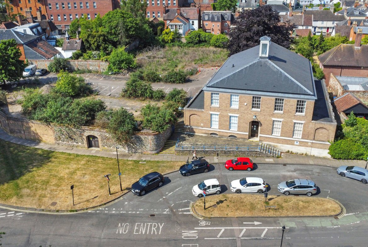 Former Suffolk C C Archive Store. Detached brick built under a pitched slate roof. Grade 11 listed on 2 floors plus basement with 3 car parking spaces. 7,677 sq ft GIA.