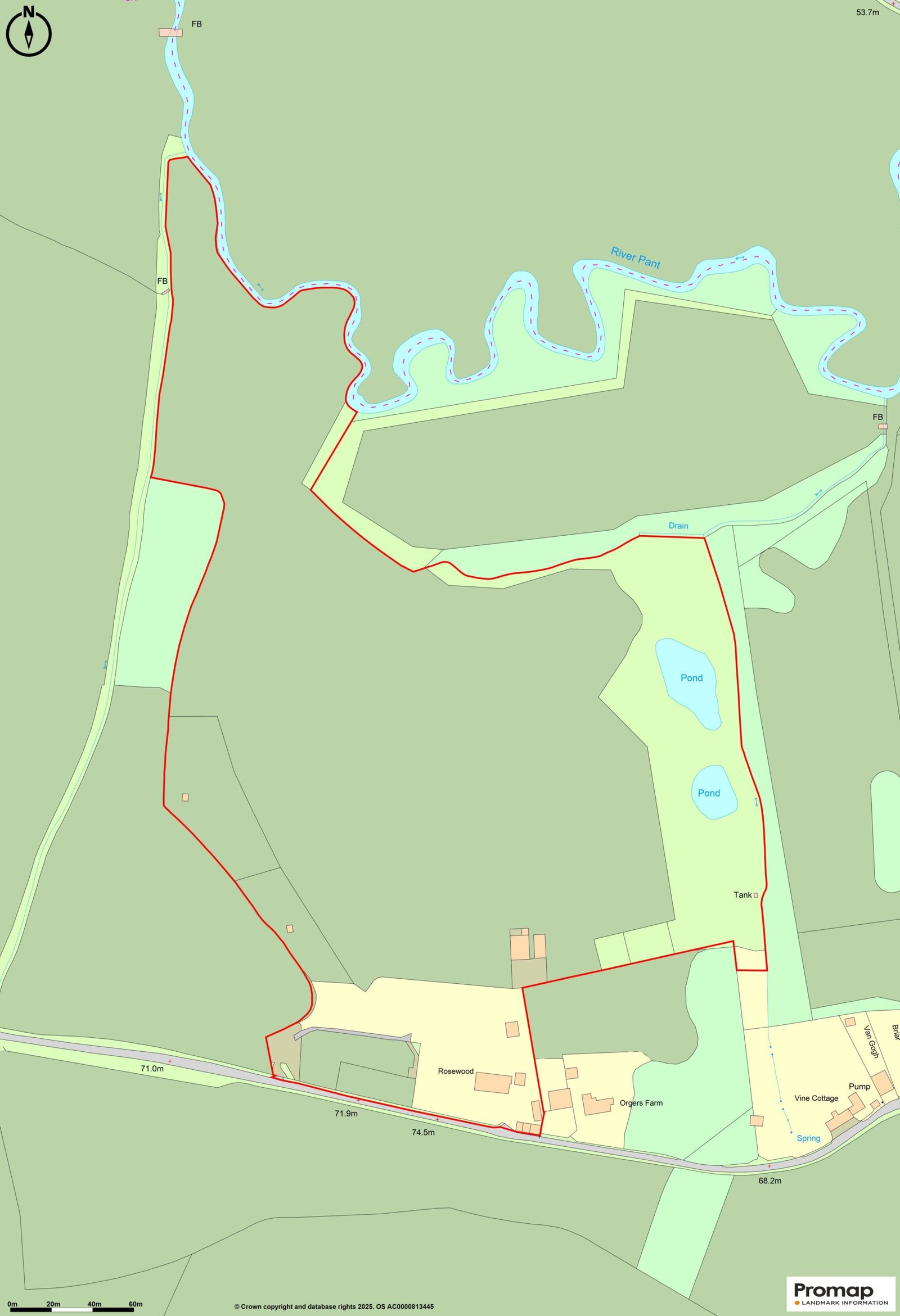 In addition there is a 9 hole pitch and putt golf course, together with wildlife ponds situated close to the eastern boundary and mixed broadleaf woodland. The land is bordered by the River Pant on the northern boundary and is bordered by agricultural land to the east and west.