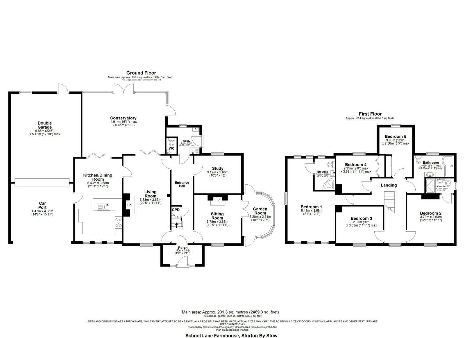 The property comprises of a porch, entrance hall, living room, sitting room, study, garden room, conservatory, kitchen / dining room, utility and WC to the ground floor, along with master bedroom with en-suite, guest bedroom with en-suite, three further bedrooms and a family bathroom.
