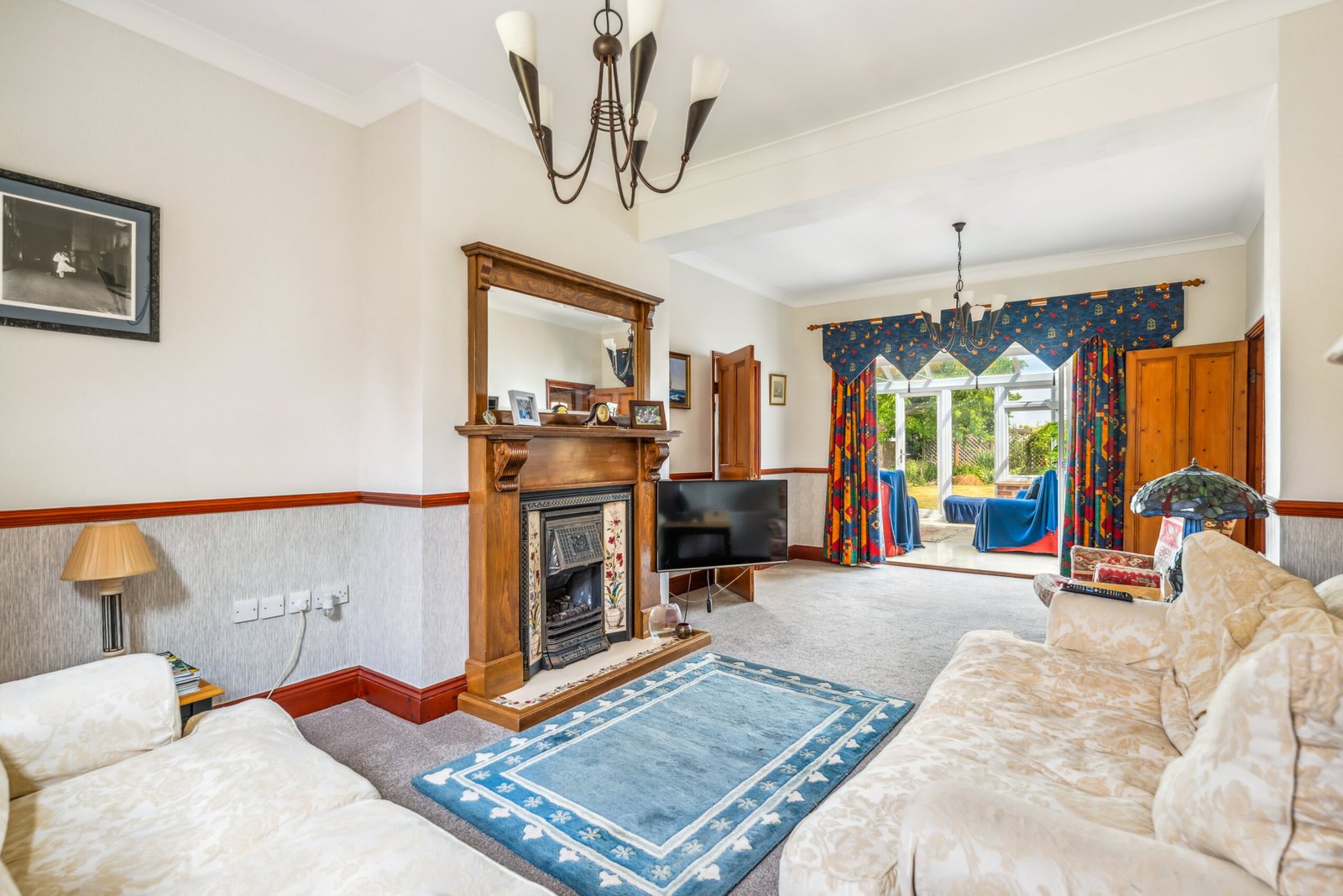 Double glazed window to front, gas fire with feature fireplace, double doors opening into conservatory, radiator.