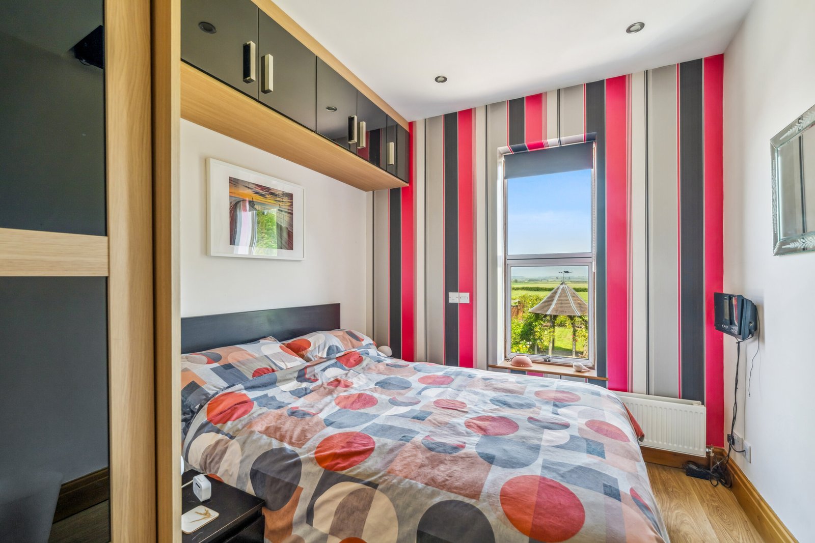 Double glazed window to rear, fitted bedroom furniture, cupboard housing hot water cylinder, shelving, radiator.