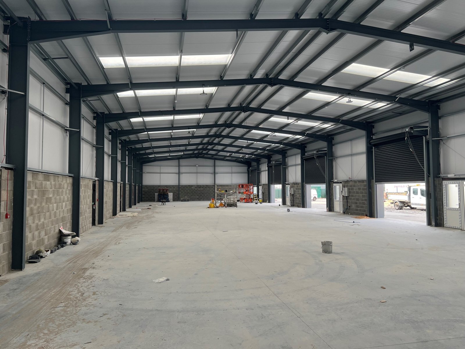 The buildings which are currently under construction are of steel portal frame construction with double skin insulated cladding to the walls and roof.