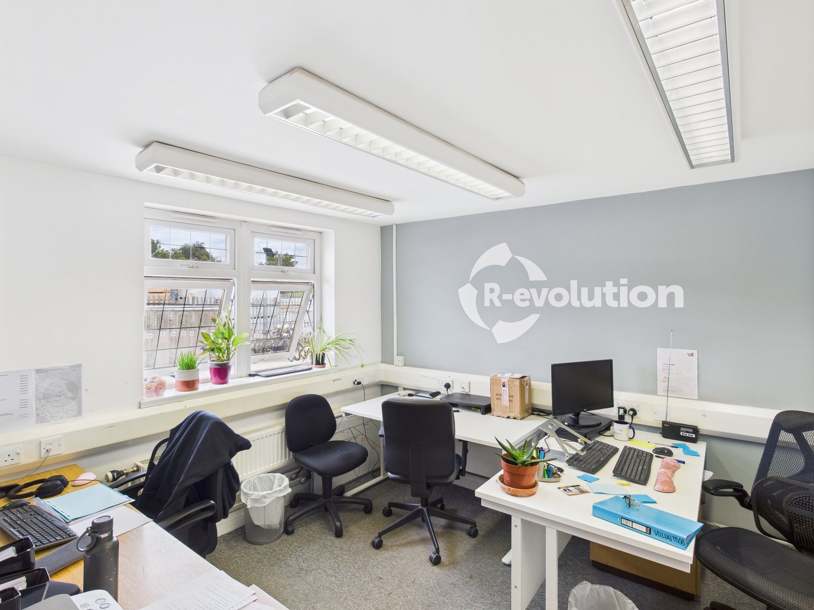 The property comprises a detached steel portal framed industrial building with associated stores, interlinking offices and reception lobby.