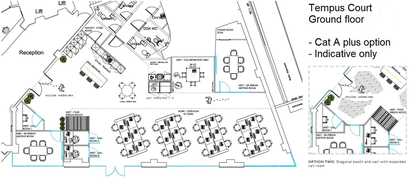 Tempus Court is situated in a prominent location in the heart of Guildford, close to the mainline station and the High Street. The building benefits from an attractive manned reception, 2 passenger lifts, secure parking & shower facilities. The reception is currently being refurbished and remodelled to provide a best in class business lounge with 2 ground floor suites. A 2nd floor suite is also undergoing comprehensive refurbishment. The Landlord can also offer the space on a fully fitted & furnished Cat A plus basis,