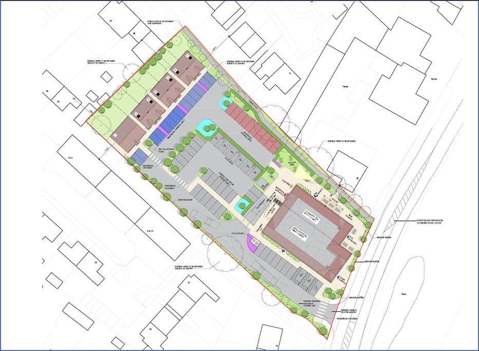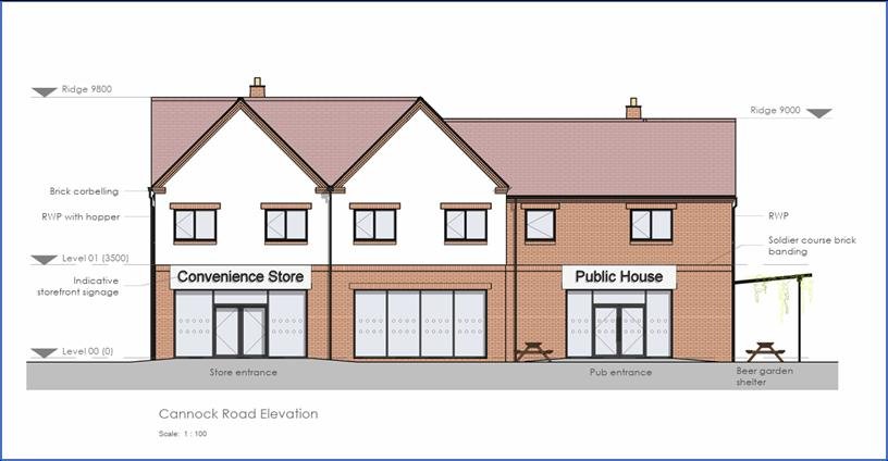 • Freehold site with planning granted for mixed use development comprising ground floor convenience retail store, community pub, EV charging hub, 8 apartments and 7 residential dwellings.