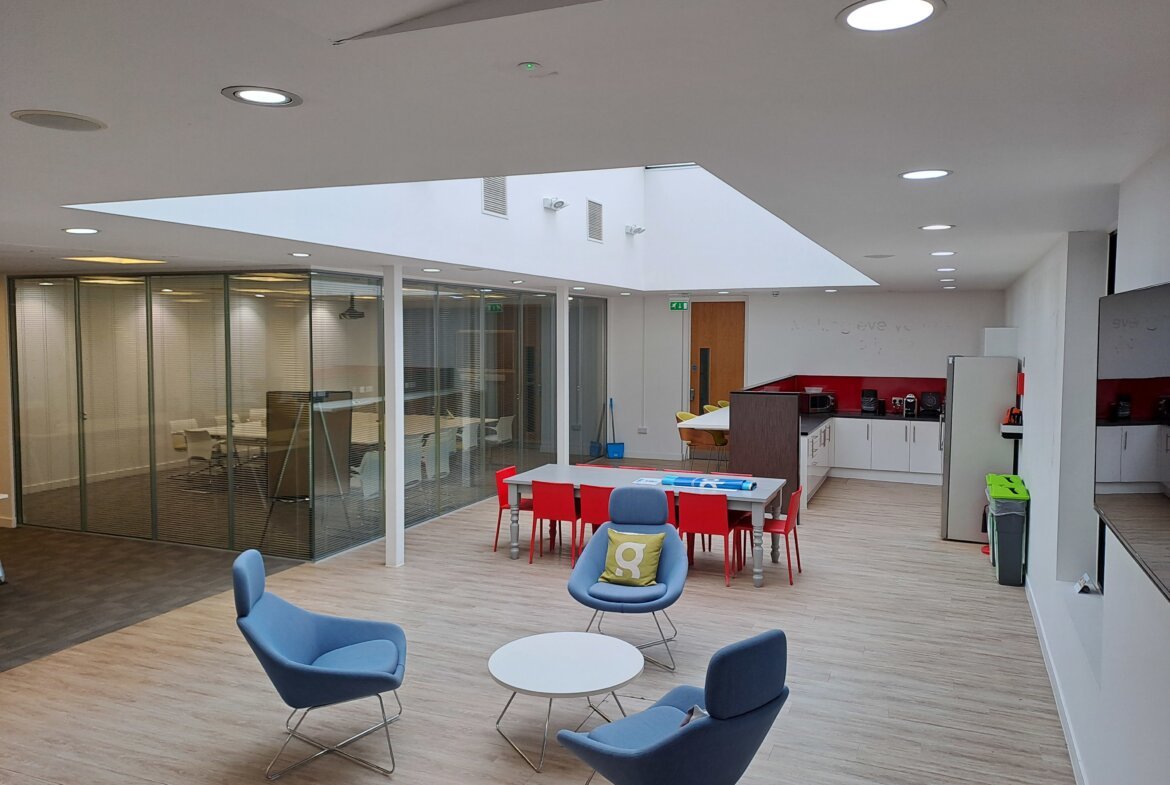 The building provides accommodation over split ground floor level with office administration accommodation being towards the front of the property, staff welfare/breakout at the middle and recording studios/IT towards the rear. Within the main office area there are two open plan office spaces 1 small office, two 8 person meeting rooms and a larger board room. Internally the property has suspended ceilings with LG7 lighting and Air Conditioning. The property benefits from being fully DDA accessible.