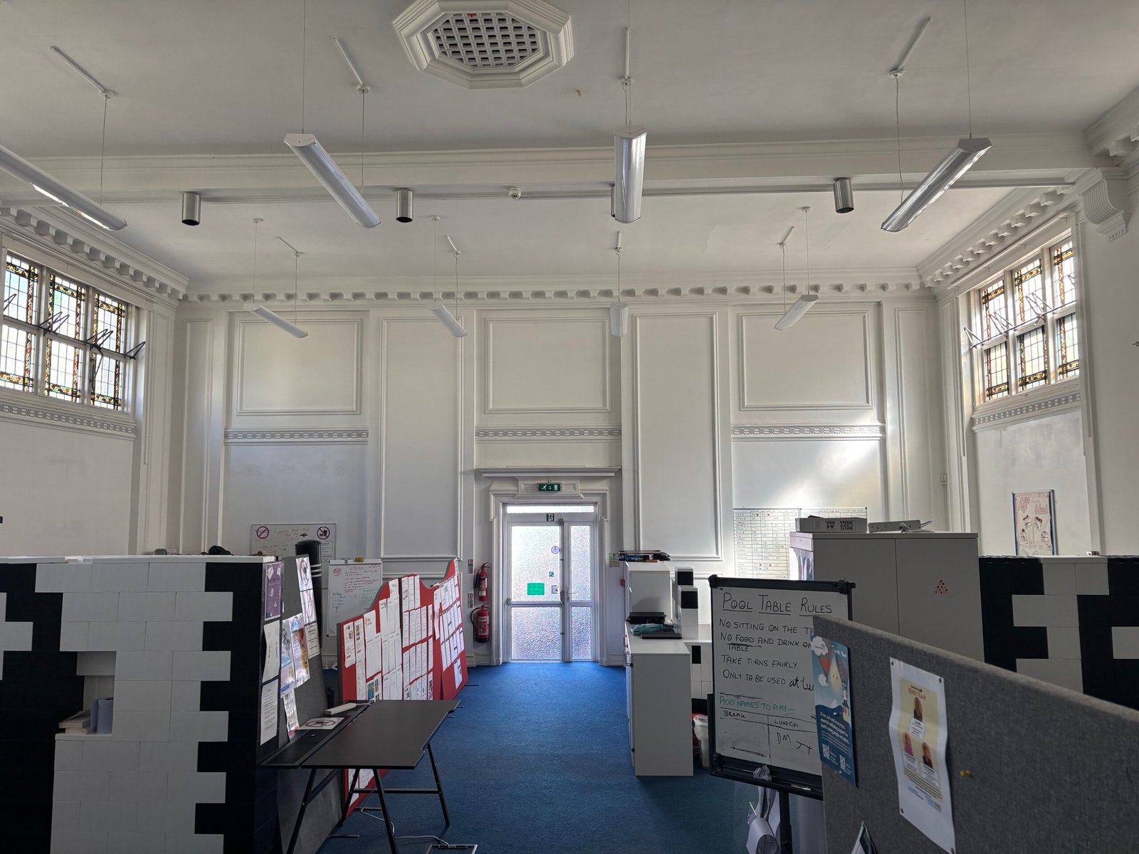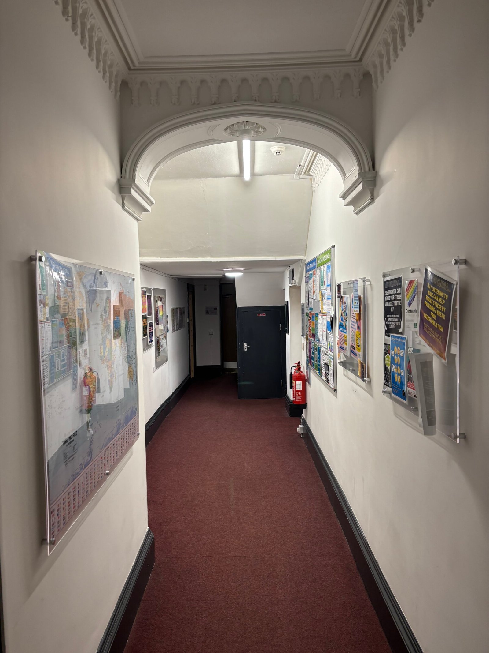 Internally, save for 2 halls to the southern end of the ground floor, the accommodation is mainly of cellular configuration with individual offices, meeting rooms at ground, first and second floor levels on either side of a central corridor. There are 3 separate staircases provided access to upper floors, with the building as a whole having limited welfare facilities with toilet accommodation being mainly confined to the northern elevation at ground level and also southern elevation at the same level, with a toilet at the first floor level at the south elevation with a staff kitchen at ground level. There is a panel radiator system served by 2 aging gas fired boilers within the basement which serves the majority of the property which also has a mains wired smoke detection and alarm system.