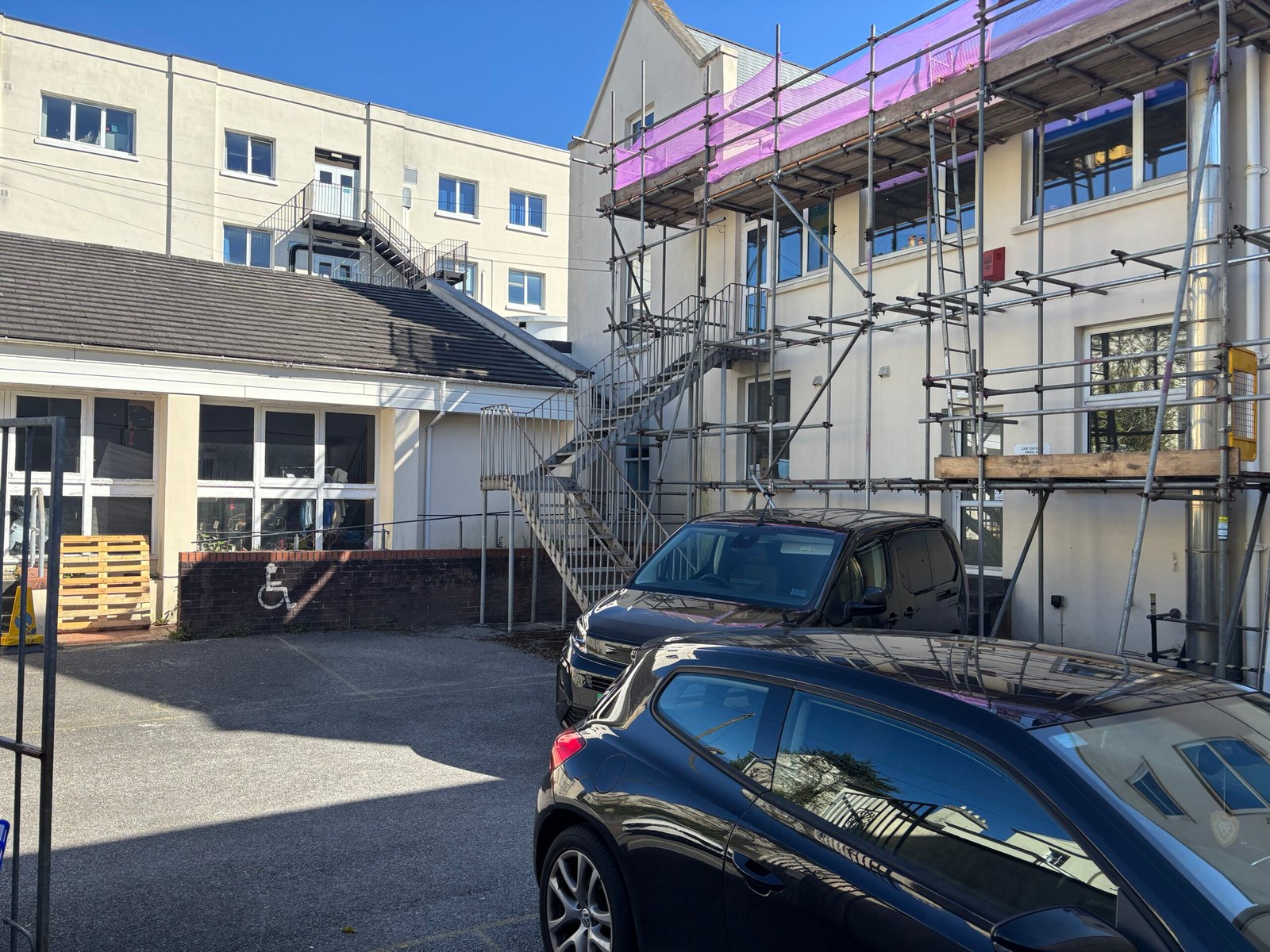 The subject asset comprises a substantial effectively detached building with pedestrian access from Mutley Plain, the property's eastern boundary comprising masonry wall, beyond which is a small landscaped garden area. There is vehicular access via a service road to the West with the western boundary also being formed by masonry wall with metal gates closing the site. The building itself viewed from Mutley Plain, is of 3 storey construction, with partial second floor accommodation, to which predominantly single storey additions have been added over the years to the rear western side in the form of a hall and studio. The main building has externally rendered and painted elevations beneath slated roof pitches with the rear additions having the combination of flat felted roof and concrete tiled roof surfaces. Internally floors are largely carpeted, walls papered and ceilings painted or papered to the main part, many rooms having fluorescent lighting.