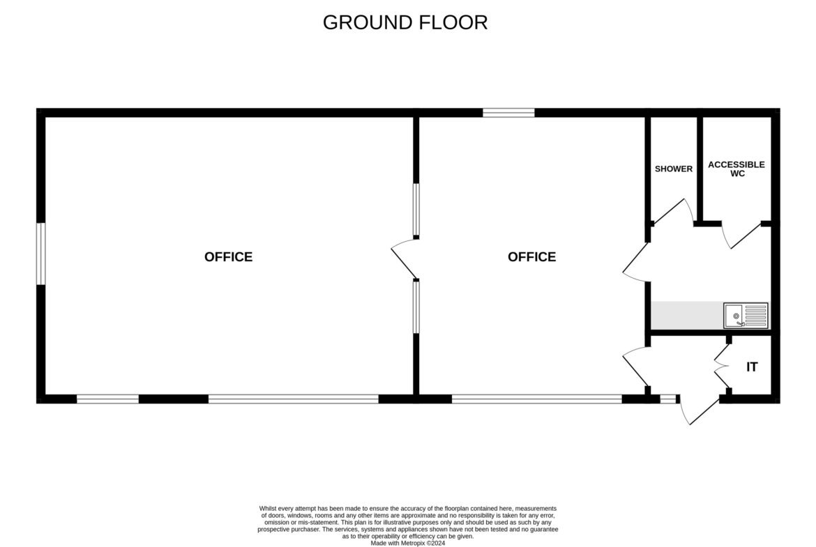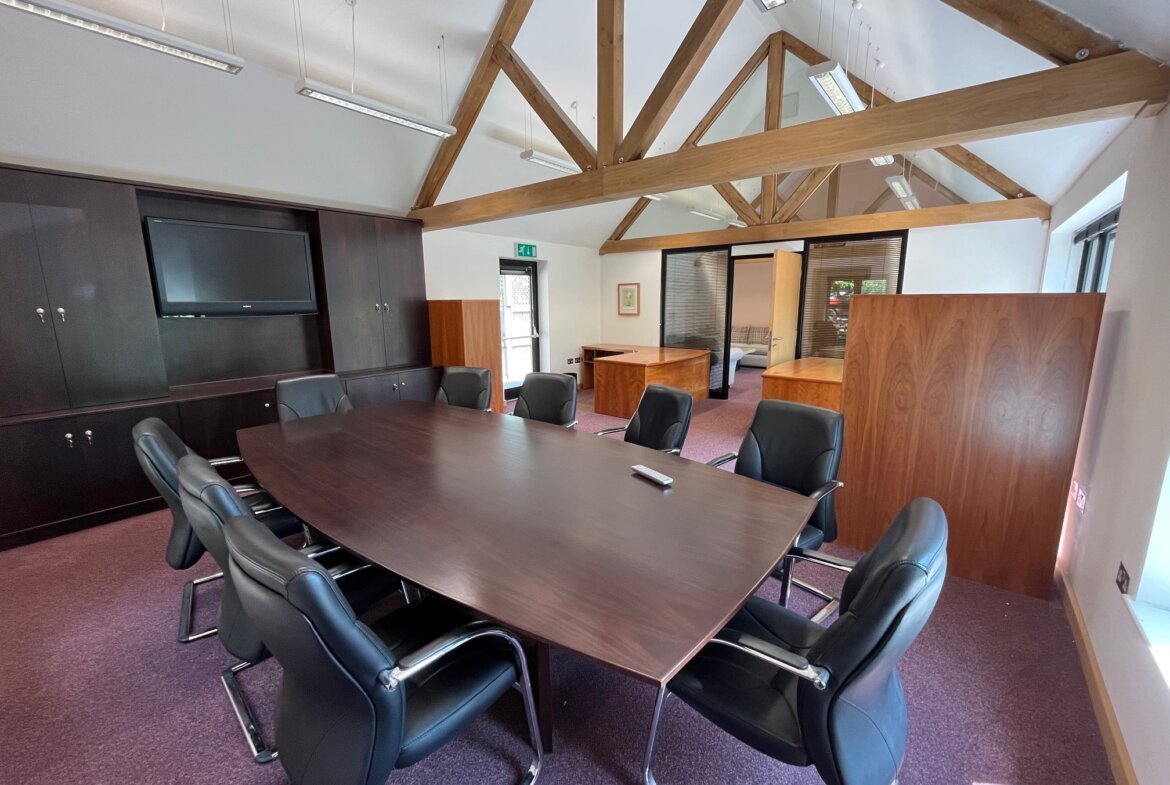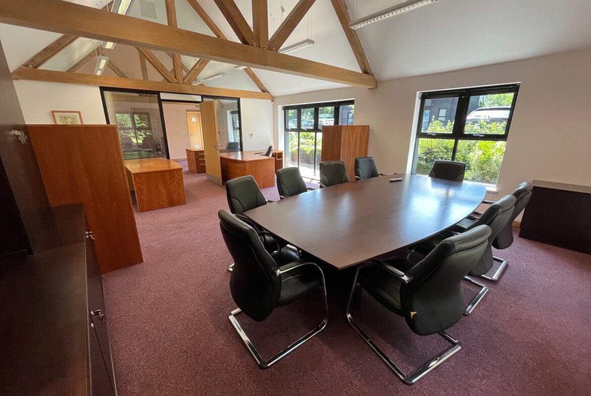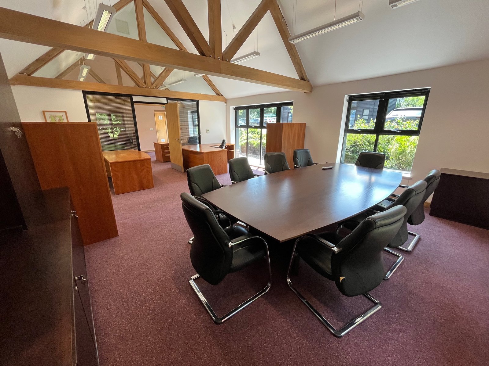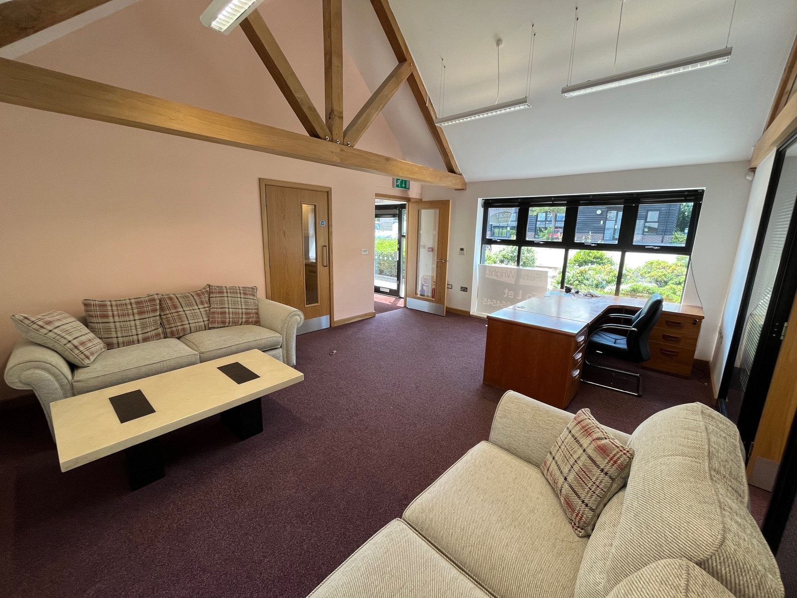 A single storey, self-contained, office which benefits from an impressive vaulted ceiling, partition wall (providing two separate working areas), air conditioning, lighting, carpeting, high speed fibre optic broadband (BT lease line of 80 mb download & upload), alarm system, network cabling & switch panel, tea point, accessible WC facility and shower.