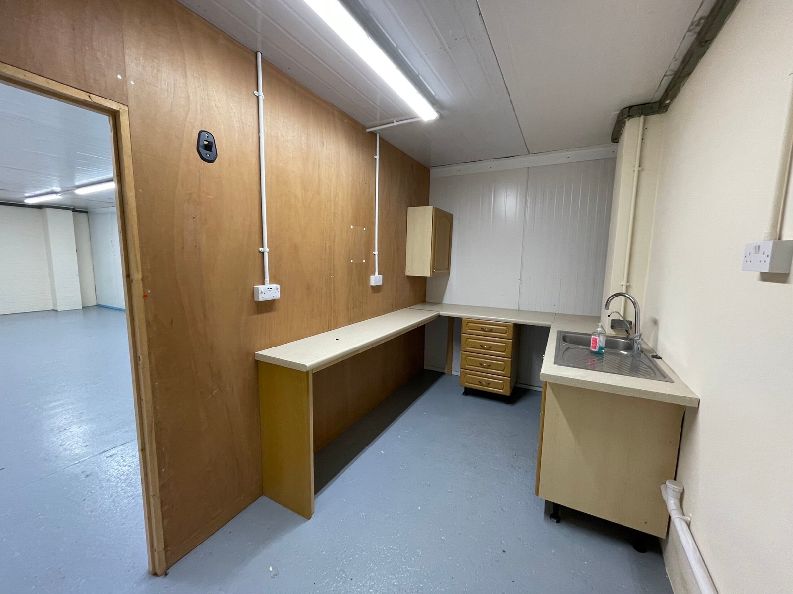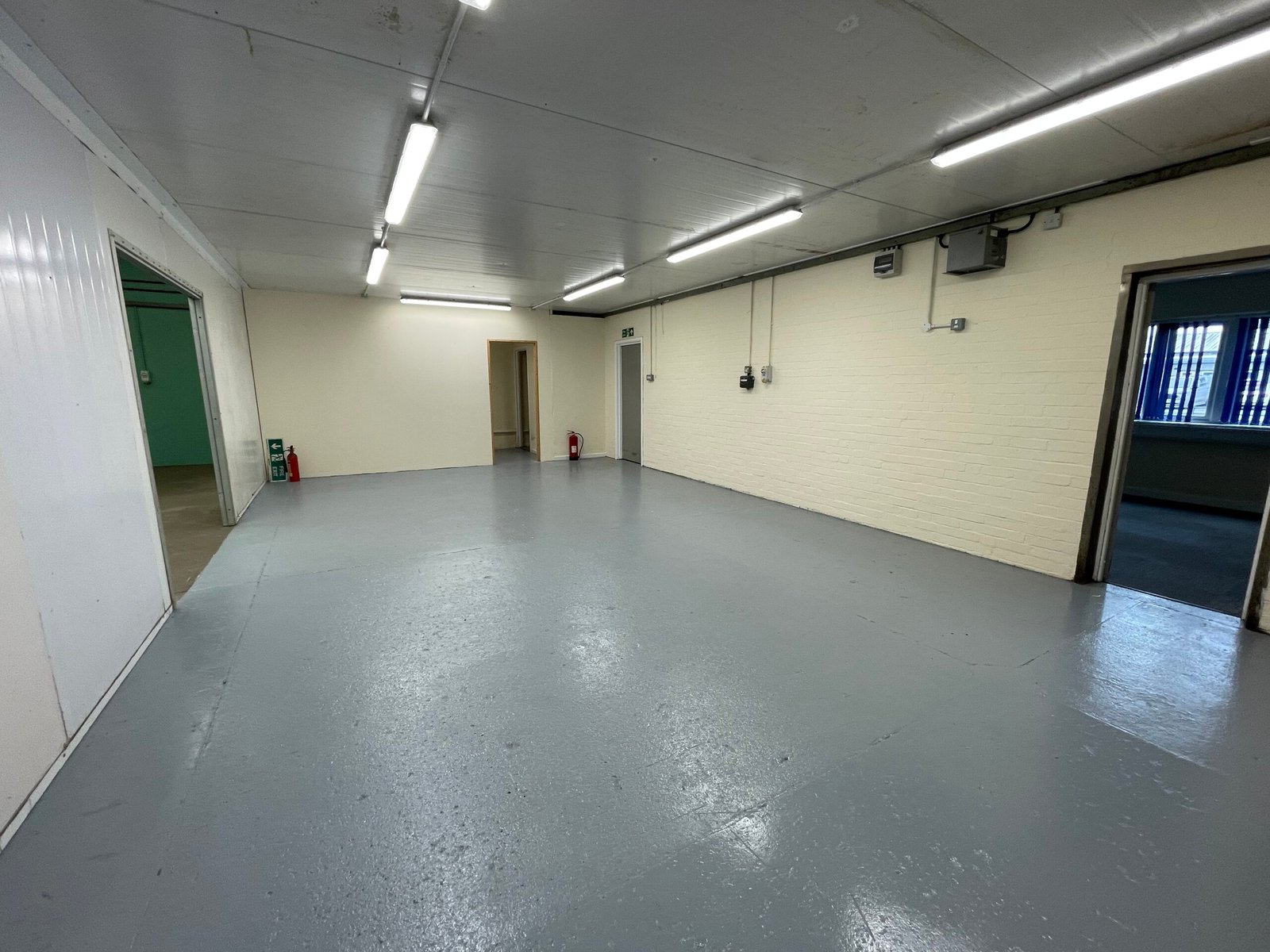 Unit 1 comprises an end terrace commercial building and forms part of the Seven Gables Court Estate. The property is of steel portal frame construction, with profiled steel cladding roof and rear elevation, side and front elevations are brick black. Internally and to the front, the property has reception area, offices and W/Cs. Beyond that there is further space for office or storage with kitchen facility. At the rear there is an open warehouse with min eaves of 3m and apex of 4.93m and a rear roller shutter door.