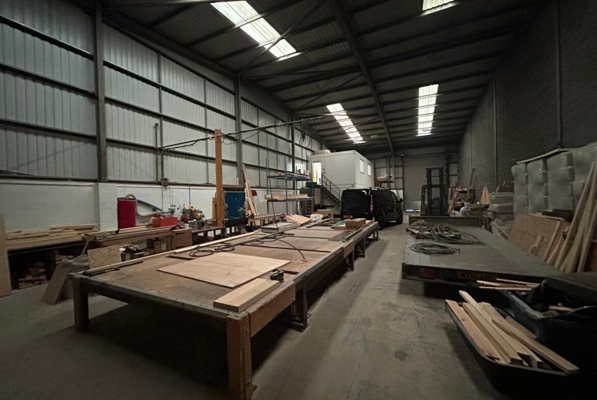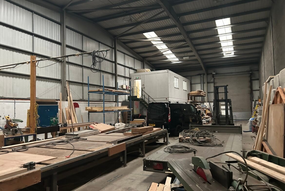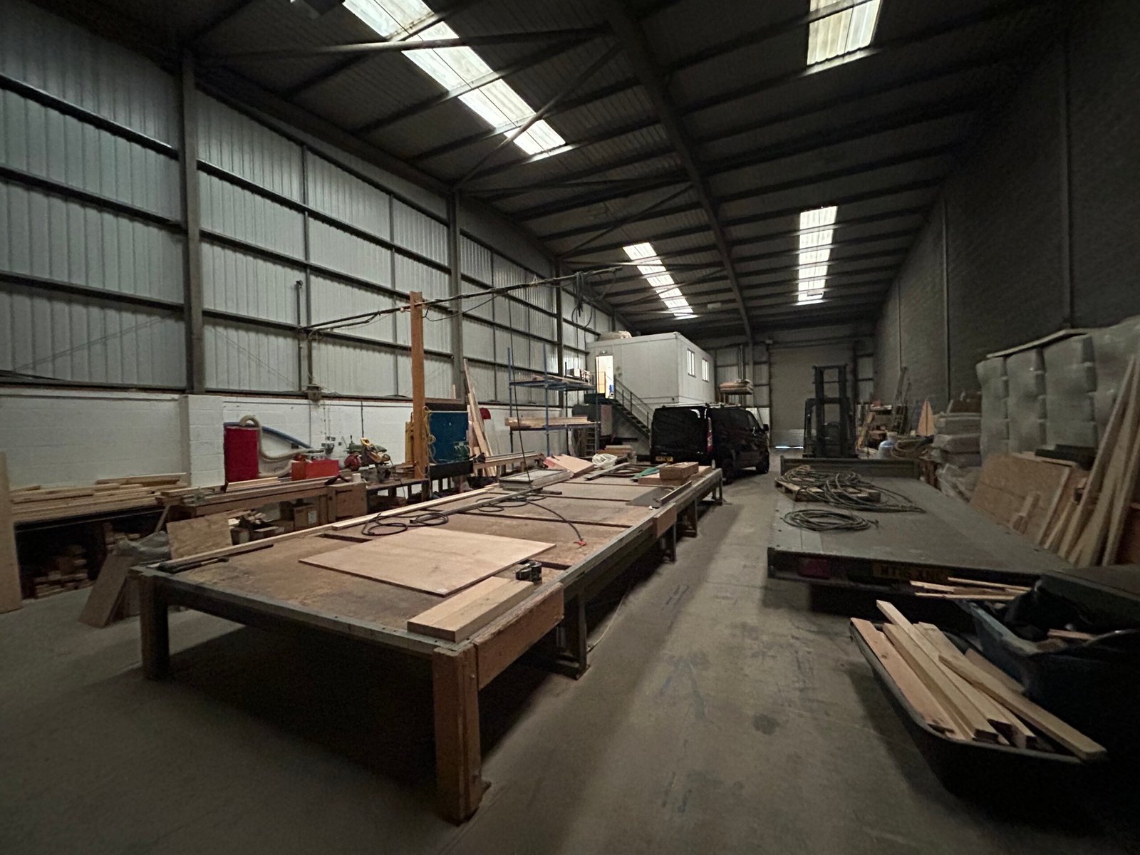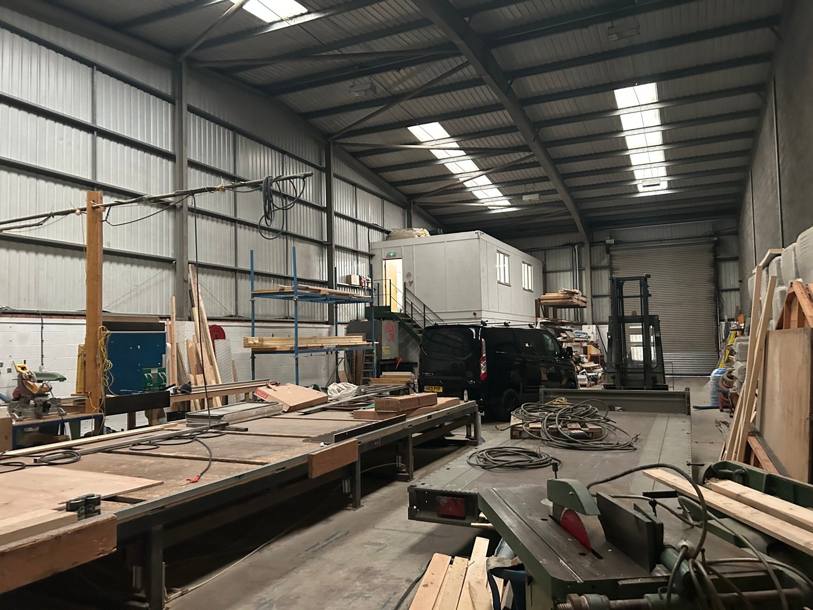 The property comprises a workshop with secure yard and car parking. The workshop benefits from a first floor office, male and female WC's, store and kitchen. Specification includes a 4m (w) x 5m (h) electric roller shutter loading bay door, 3 phase electricity supply, LED and box lighting, alarm system and broadband connectivity. The property is of profile clad steel portal frame construction with an eaves height of 7m and maximum working height of 8.55m.