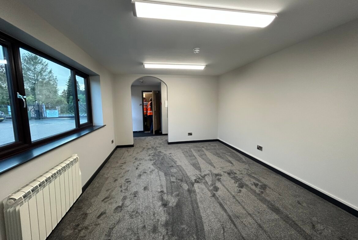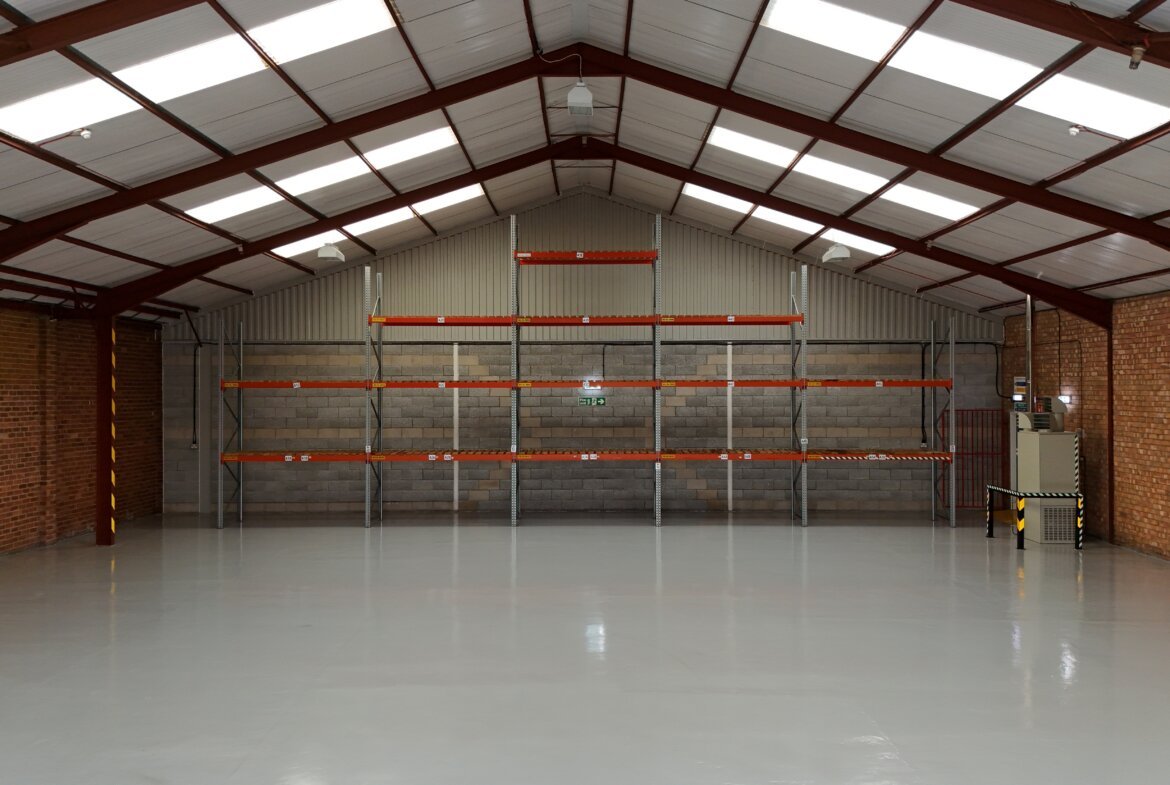 The property comprises a newly refurbished modern industrial warehouse with offices, within a secure and fully managed estate with 24/7 CCTV coverage, electrically operated perimeter gates and full alarmed fire and security systems. The floor is epoxy painted solid concrete with an eaves height of 4.5m approx. Loading access is via steel roller shutter door with pedestrian door to the office. The warehouse benefits from oil fired commercial cabinet heater.