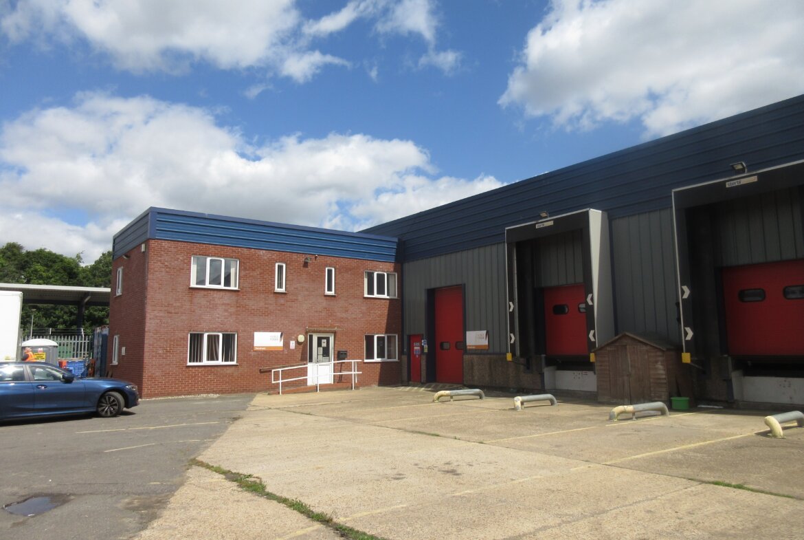 The property comprises an end-terrace warehouse/ industrial unit with two- storey purpose-built brick built offices to the front.