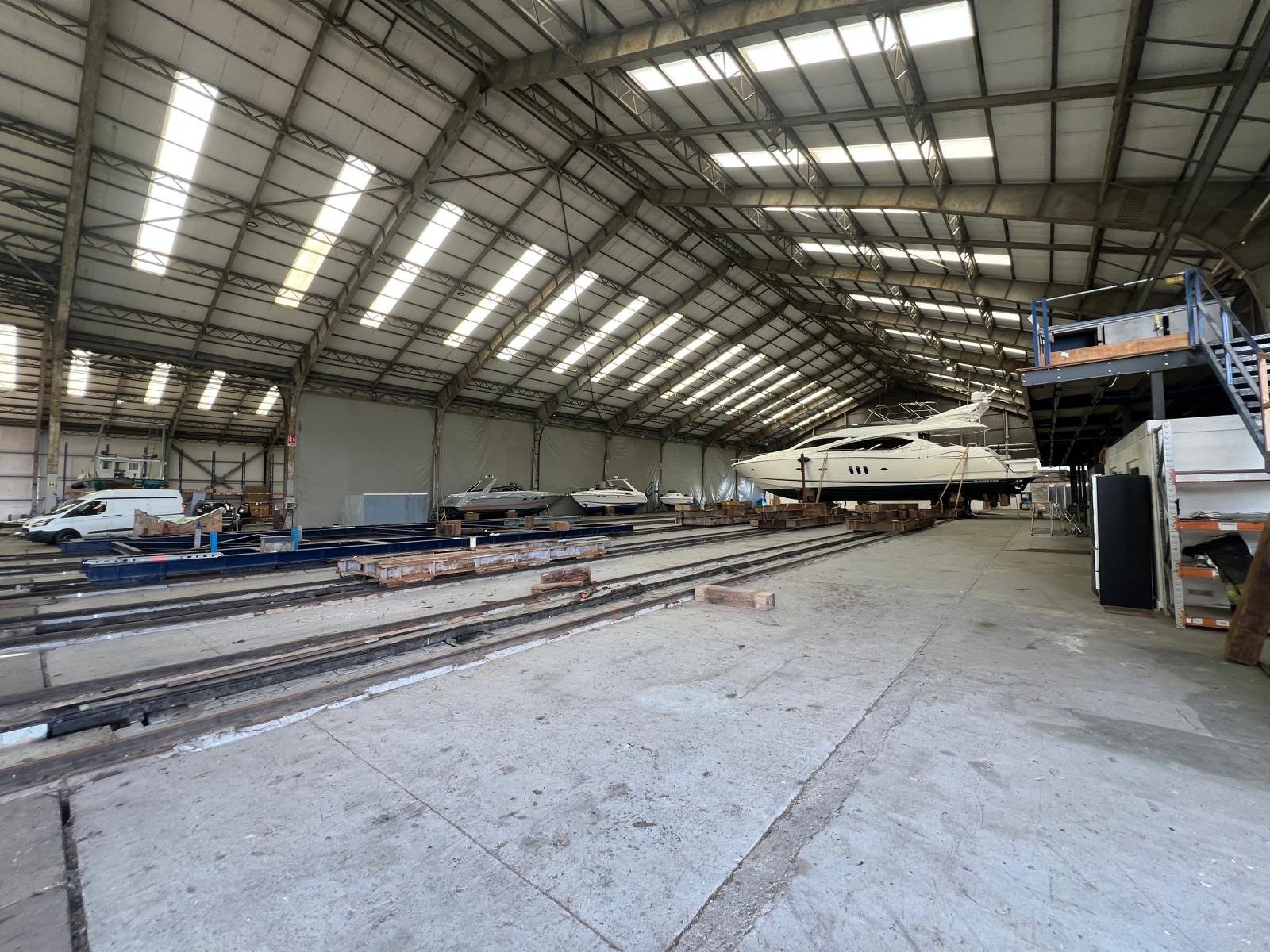 The premises comprise of one open bay and two closed bay industrial units, capable of being leased as a whole or separately. The facility benefits from an internal rail system which could provide dry docking for multiple vessels. This rail system could be removed if not required. There is a slipway immediately adjacent to the boatsheds which links to the rail system. There is side berthing space along with a long pontoon which can accommodate additional vessels. There is three phase power. Dedicated loading apron with ample parking.