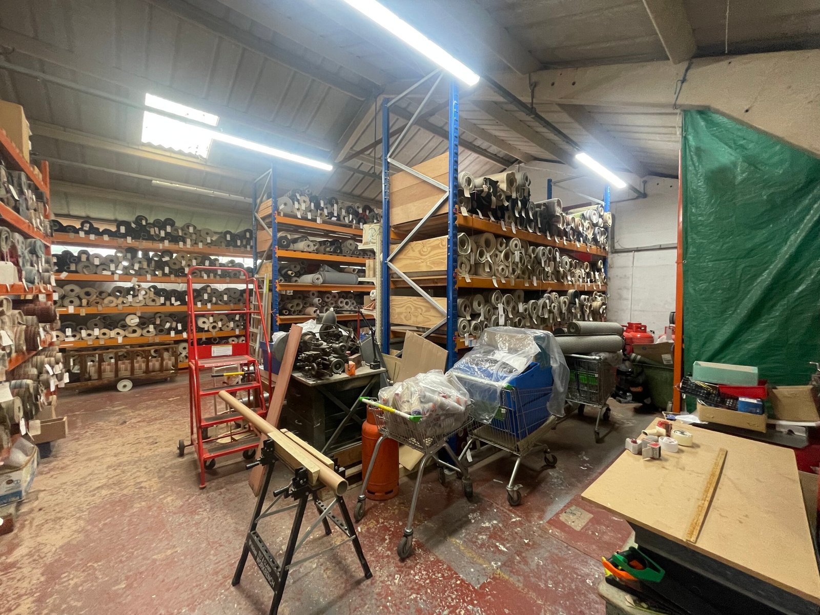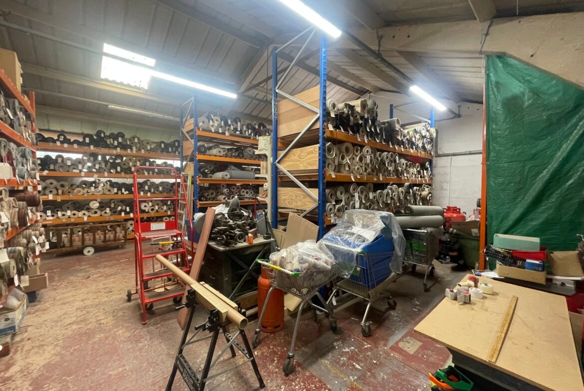 Single storey warehouse of 18.18m x 10.12m with minimum eaves height of 3.21m and a maximum of 5.27m accessed to front via a pedestrian door or a wooden concertina door with a height of 3.06m and a width of 3.66m.