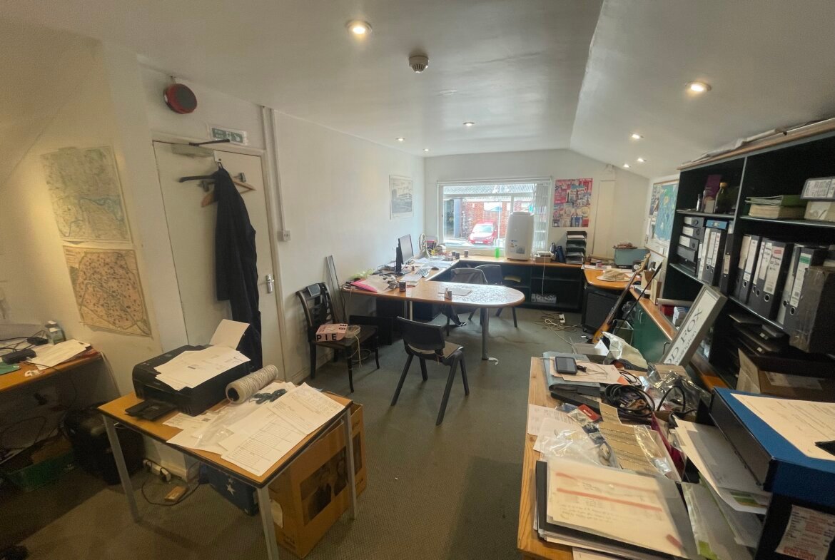 Ground floor accessed via a metal double glazed pedestrian door into reception/entrance hall with stairs to first floor office accommodation. Four ground floor offices, ladies and gents WC facilities, kitchen, store and warehouse. From the warehouse, metal steps lead to the first-floor office and wooden mezzanine with limited eaves height.