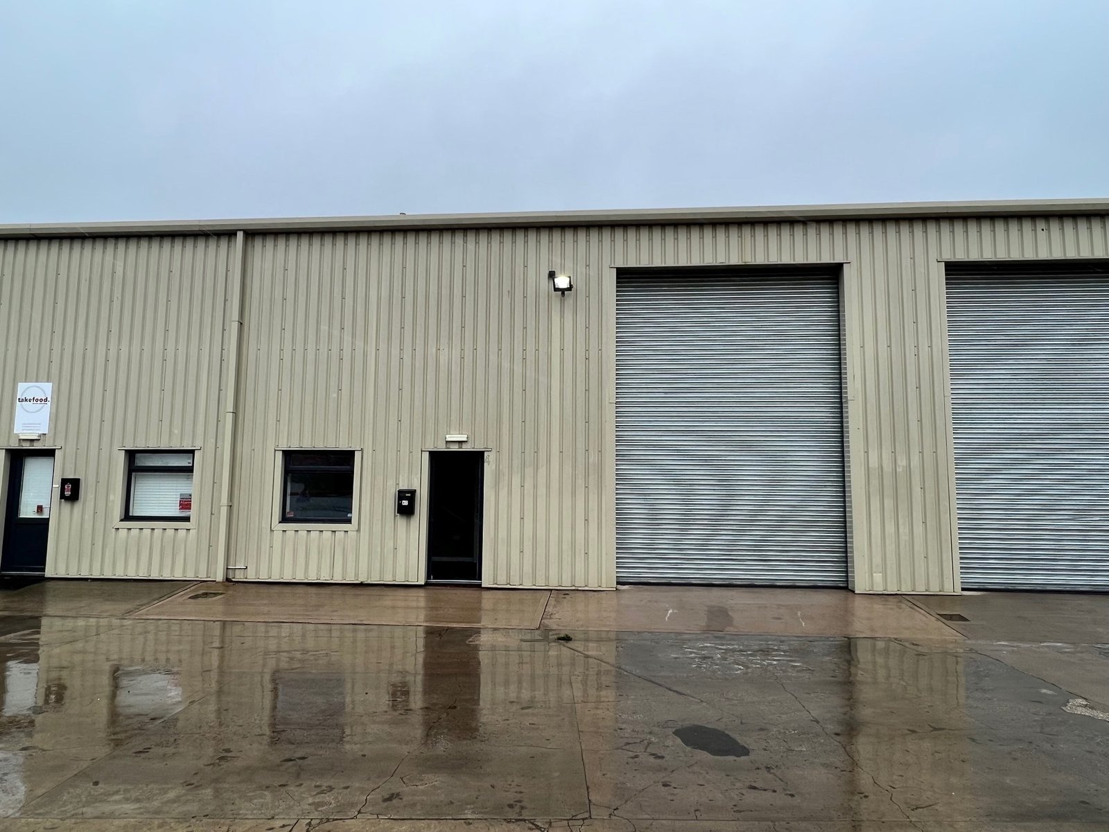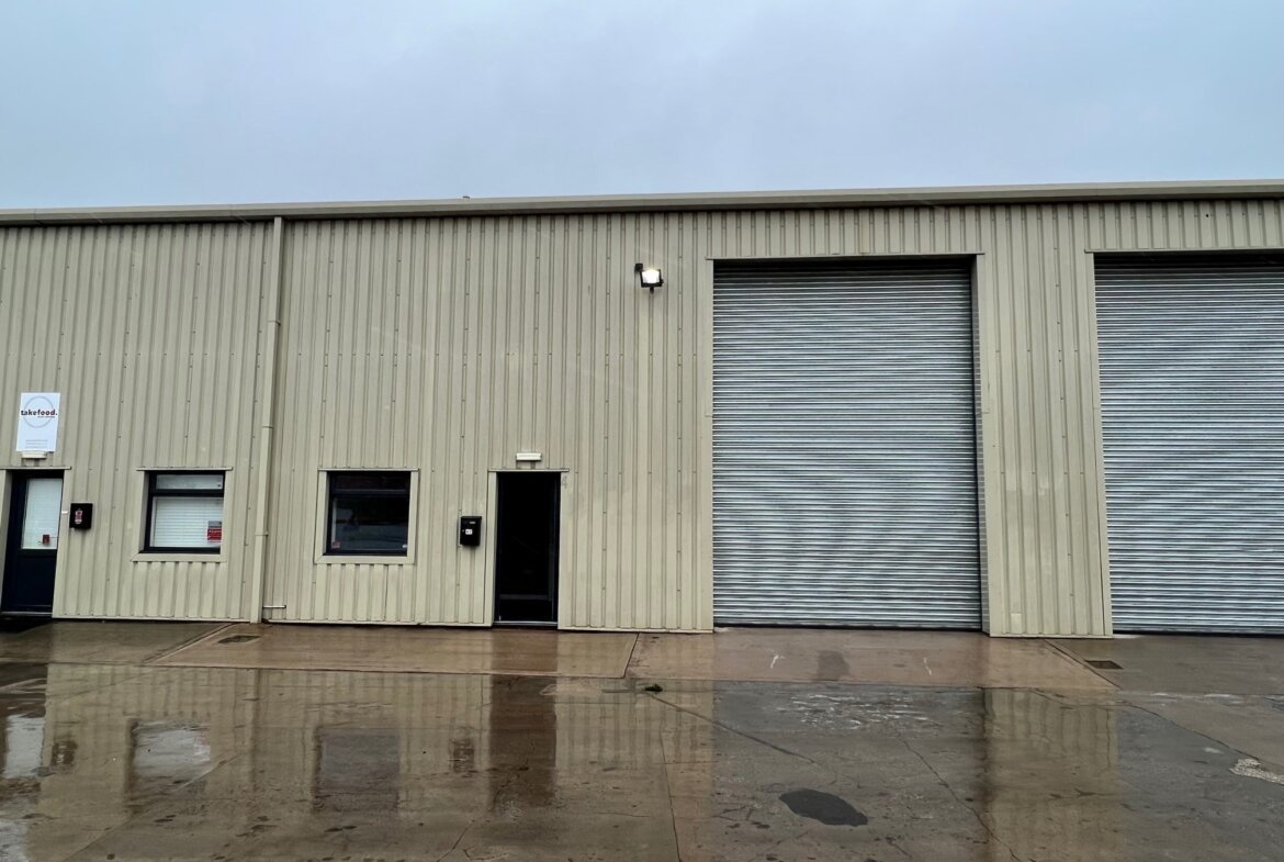 Unit 4b is constructed of steel portal frame beneath a pitched roof and corrugated sheet elevations, plastered or boarded internally, with floors being of concrete construction. The warehouse is lit by fluorescent strip lights and vehicular access is via a roller shutter door located on the front elevation. The minimum eaves height is approximately 18'5" (5.6m) rising to approximately 21'11" (6.4m). Separate pedestrian access leads into an office with a window looking out onto the forecourt. WC facilities are provided.