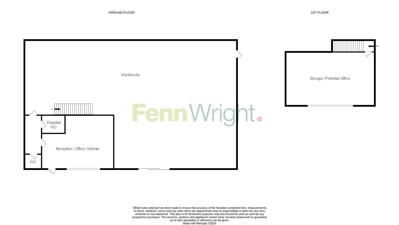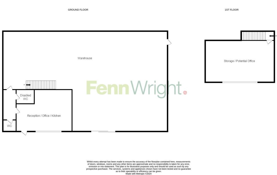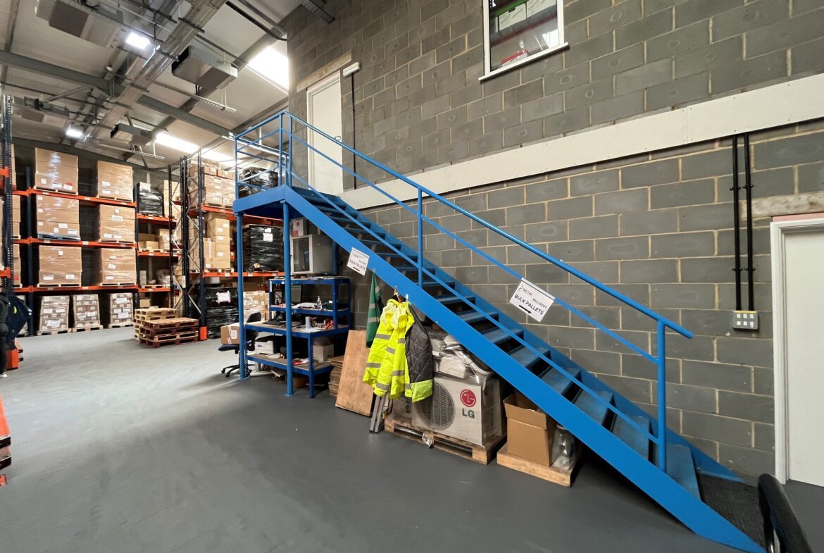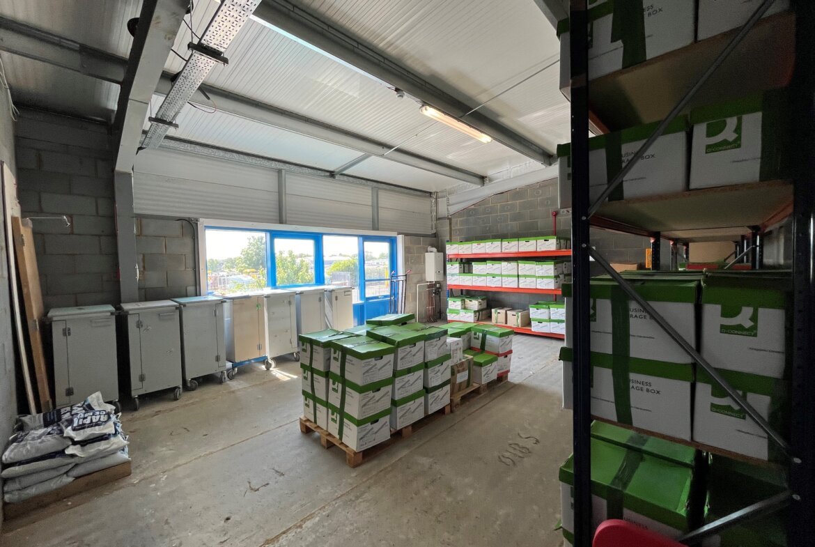 The property comprises a modern end of terrace industrial/warehouse unit of steel portal frame construction with part brick and part clad elevations. The property has a minimum eaves height of 5.75m rising to 6.50m at the apex. The warehouse can be accessed from the block paved secure yard via an electric roller shutter door. The warehouse is air conditioned and is suitable for the storage of products which require an ambient temperature. At the front of the property on the ground floor is an office and two WC's. Above the offices is an area which is currently used for storage, however with a concrete floor and windows to the front elevation the area may suit alternative uses such as offices or manufacturing.