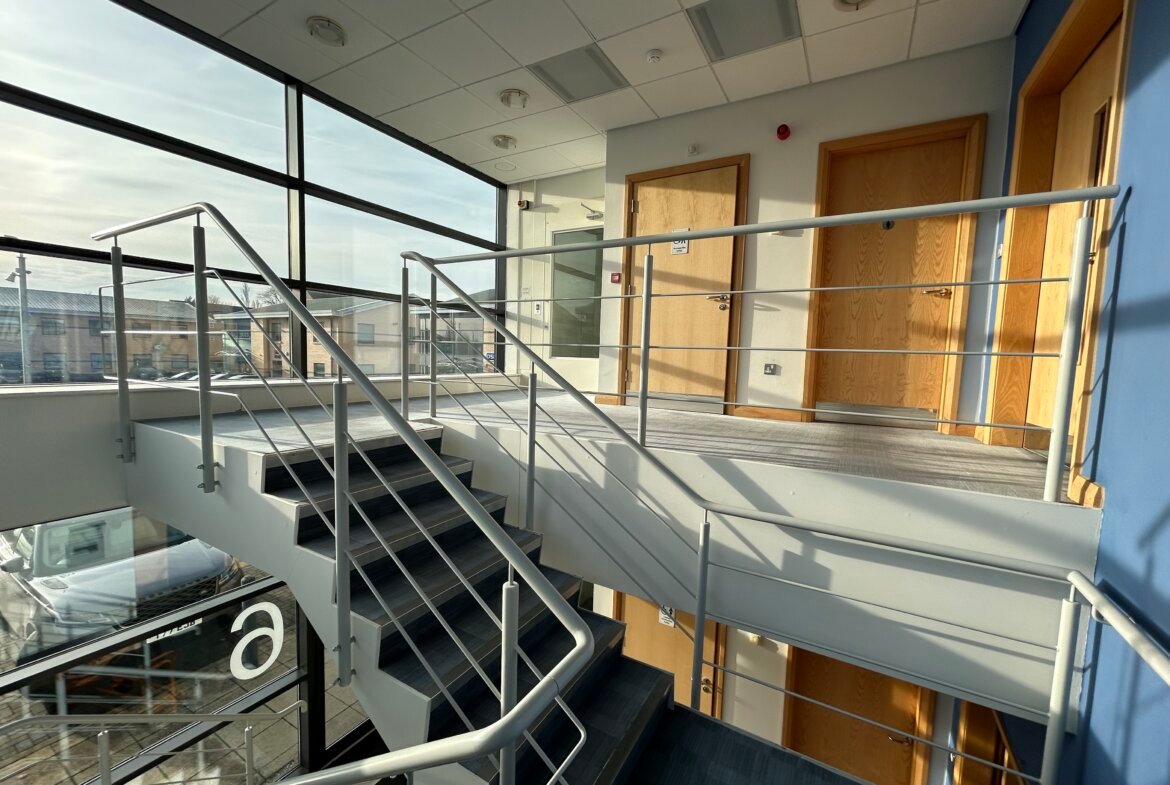 Internally, the space provides an entrance lobby with stairs & landing leading to largely open plan office area on both floor levels.