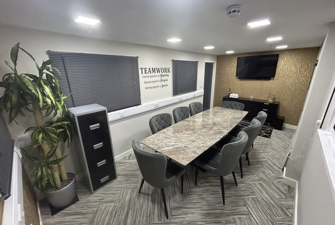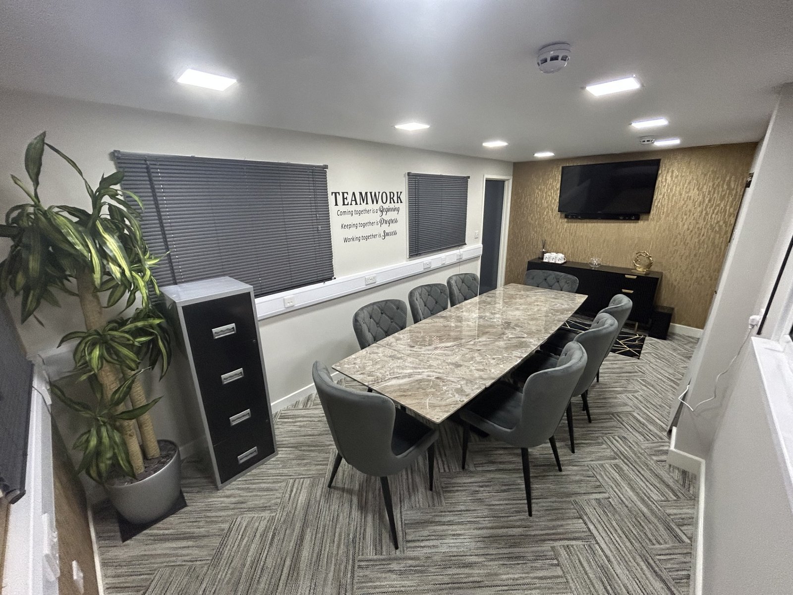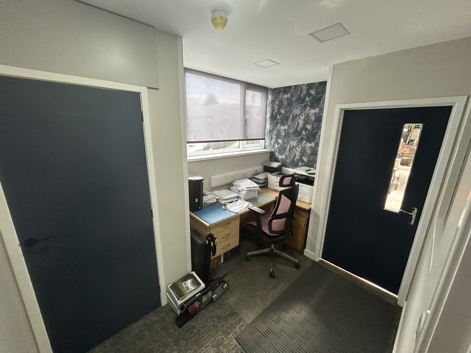 Internally, the warehouse generally provides clear and unencumbered accommodation with a solid concrete floor throughout, painted blockwork elevations and is lit by way of fluorescent strip lighting. The warehouse benefits from a kitchennete and WC facilities. The eaves height to the underside of the haunch is some 3.53m. Loading is facilitated by means of a roller shutter door in the front elevation. To the front of the unit is modern office accommodation comprising of partitioned office space, meeting room, kitchen with dining room and WC accommodation.
