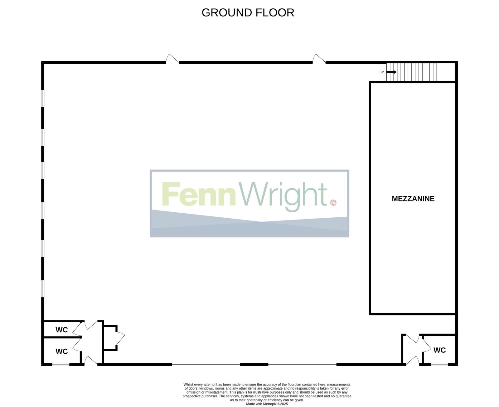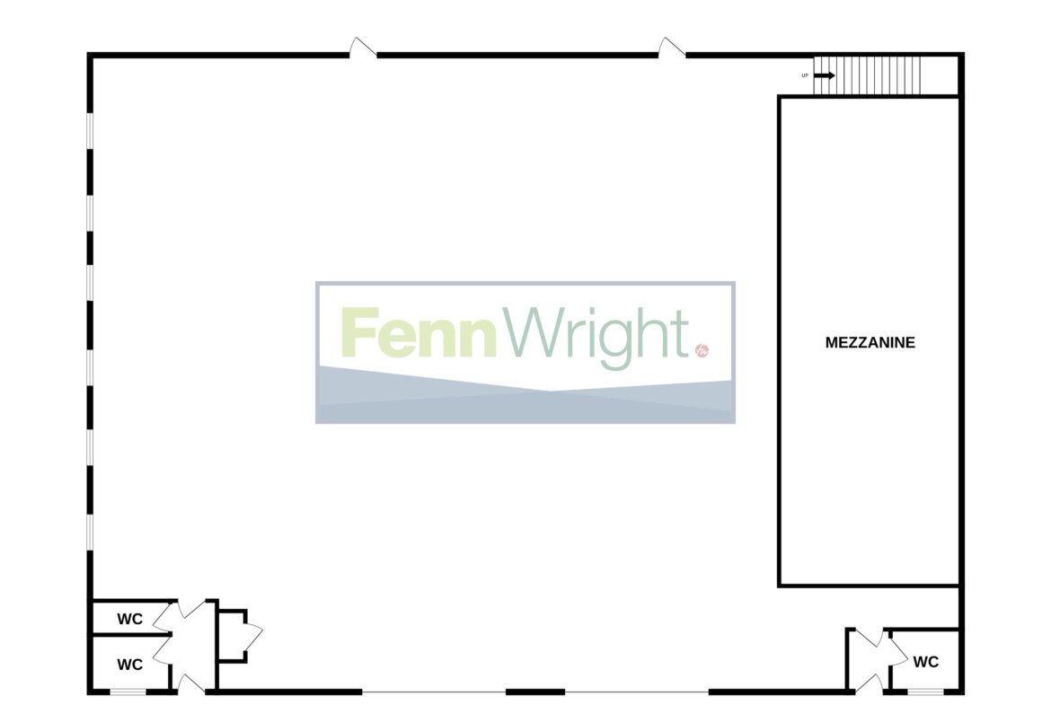 The warehouse is accessed via two large roller shutter loading doors (approx. 4.0m wide by 4.9m high) and benefits from a mezzanine floor, high bay lighting, three-phase power supply, and WC facilities. Access is also provided via two personnel doors with further access to the WC facilities.