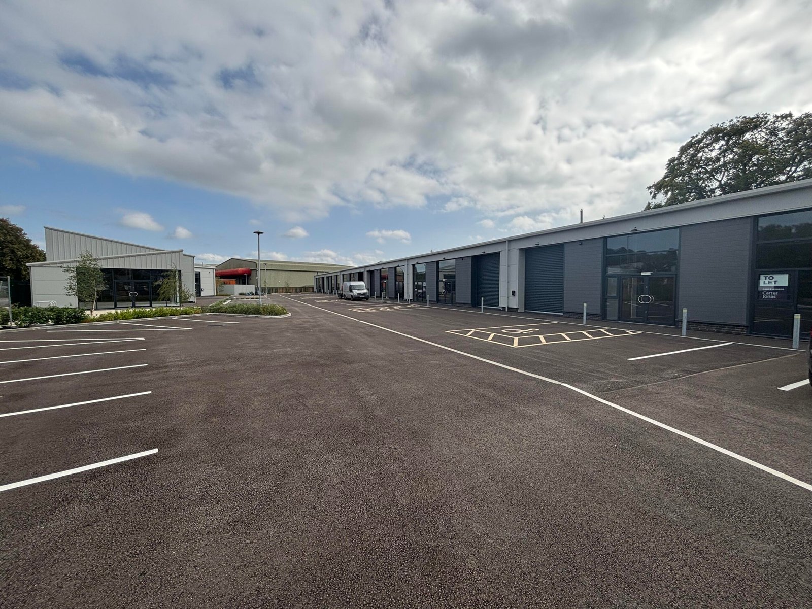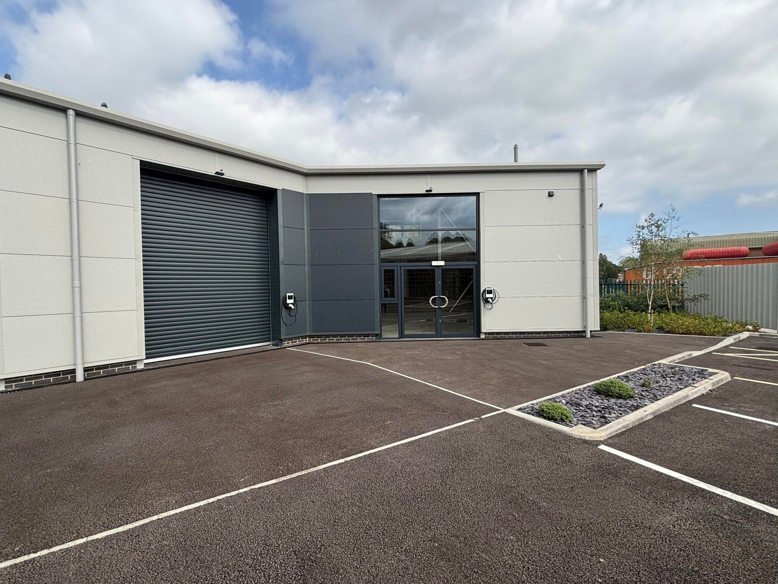 The site has an asphalt car park which will be landscaped and white lined with allocated spaces for each of the industrial units.