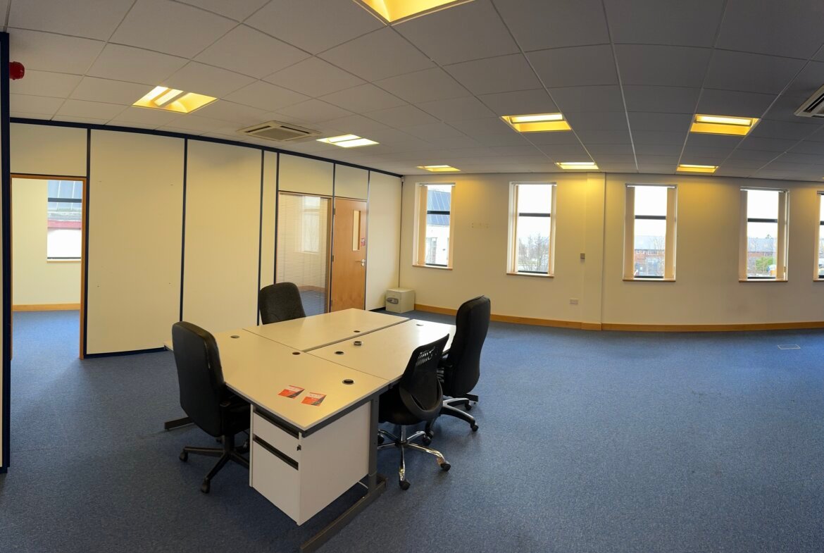 Internally, the property provides a mix of open plan office accommodation and meeting rooms, separated at ground via a dividing wall. Externally, there is allocated parking on site.