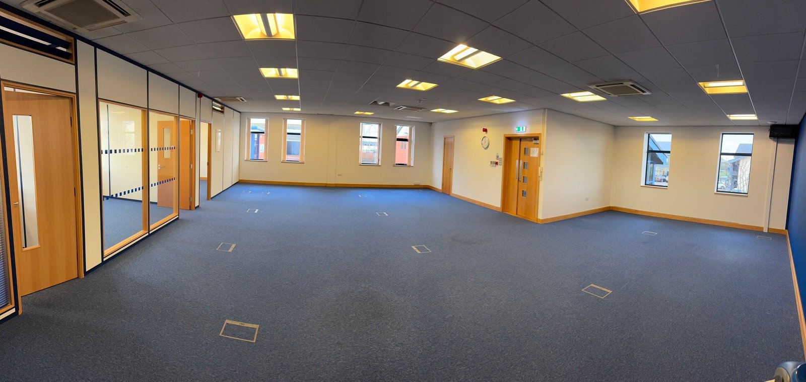 - Cellular offices/meeting rooms on both ground and first