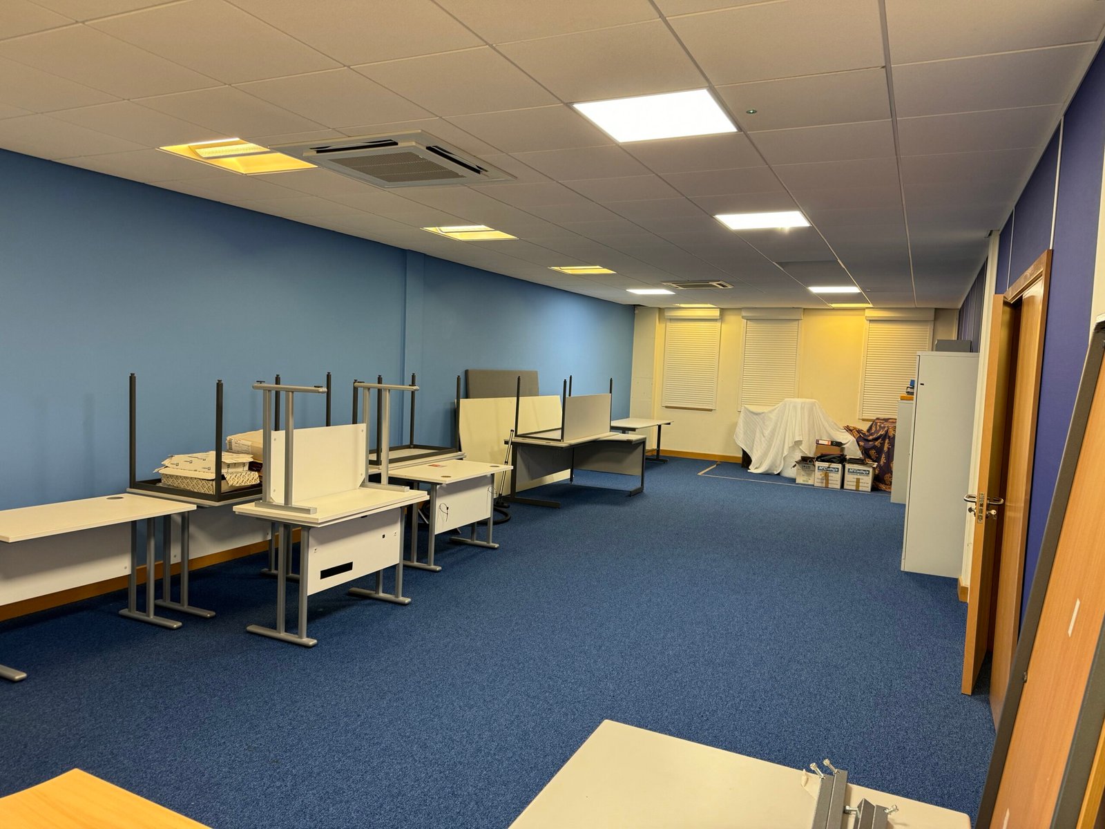 - Suspended acoustic tiled ceiling