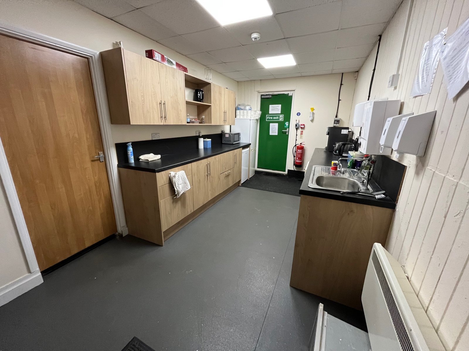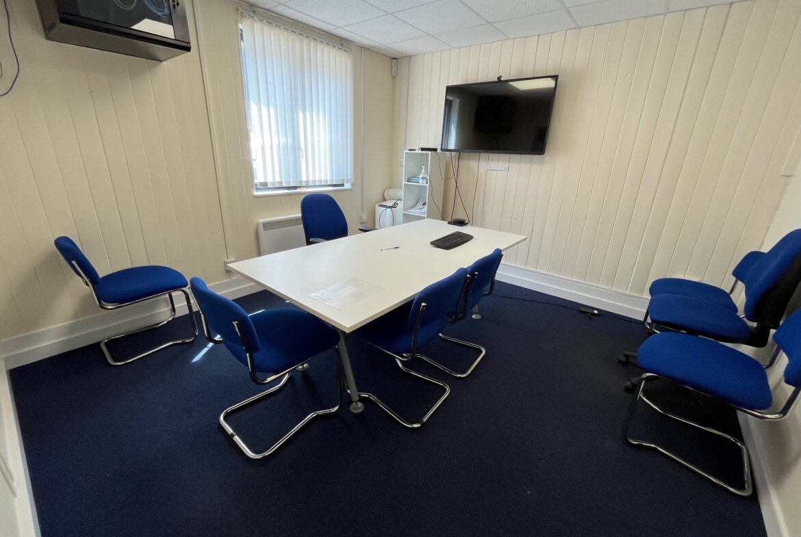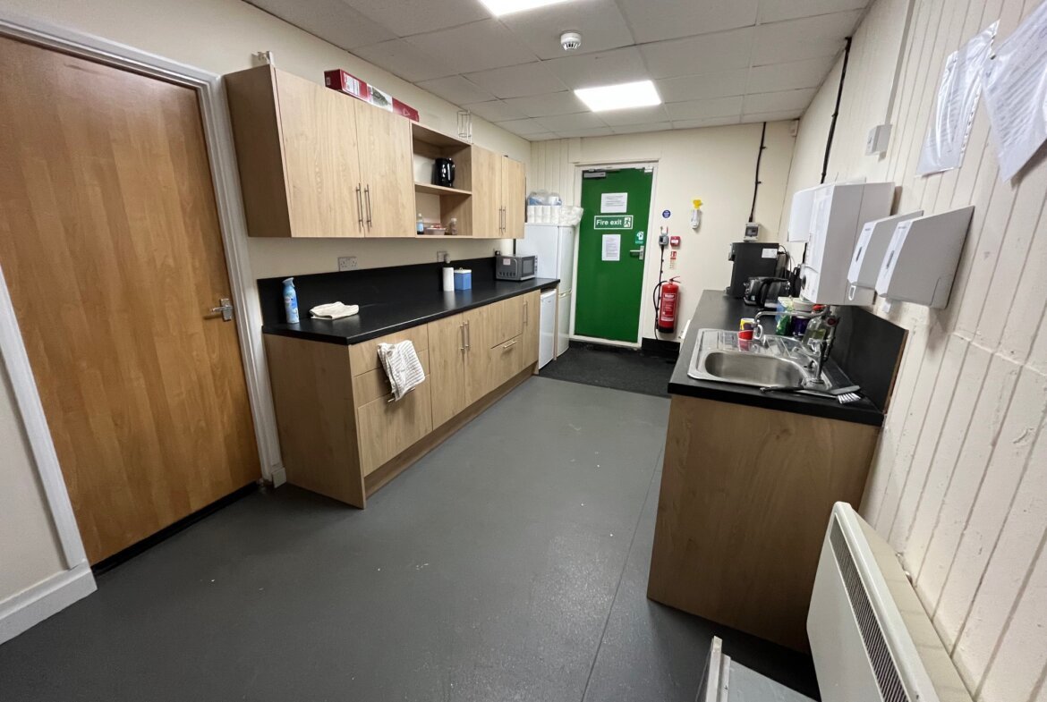 Units F & G feature a pitched and insulated roof and benefit from a large roller shutter loading door (approx. 3.6m width x 2.9m height) providing access to the warehouse area which offers an approx. eaves height of 2.8m and an apex height of 4m, fluorescent lighting and a three-phase electrical supply. A separate personnel entrance leads to a carpeted office area, which benefits from a suspended ceiling, recessed fluorescent lighting, ample electrical sockets, electric convector heaters, a fire alarm system, and double-glazed windows with fitted blinds. To the rear, there is a good sized kitchenette and access to on-site WC facilities.