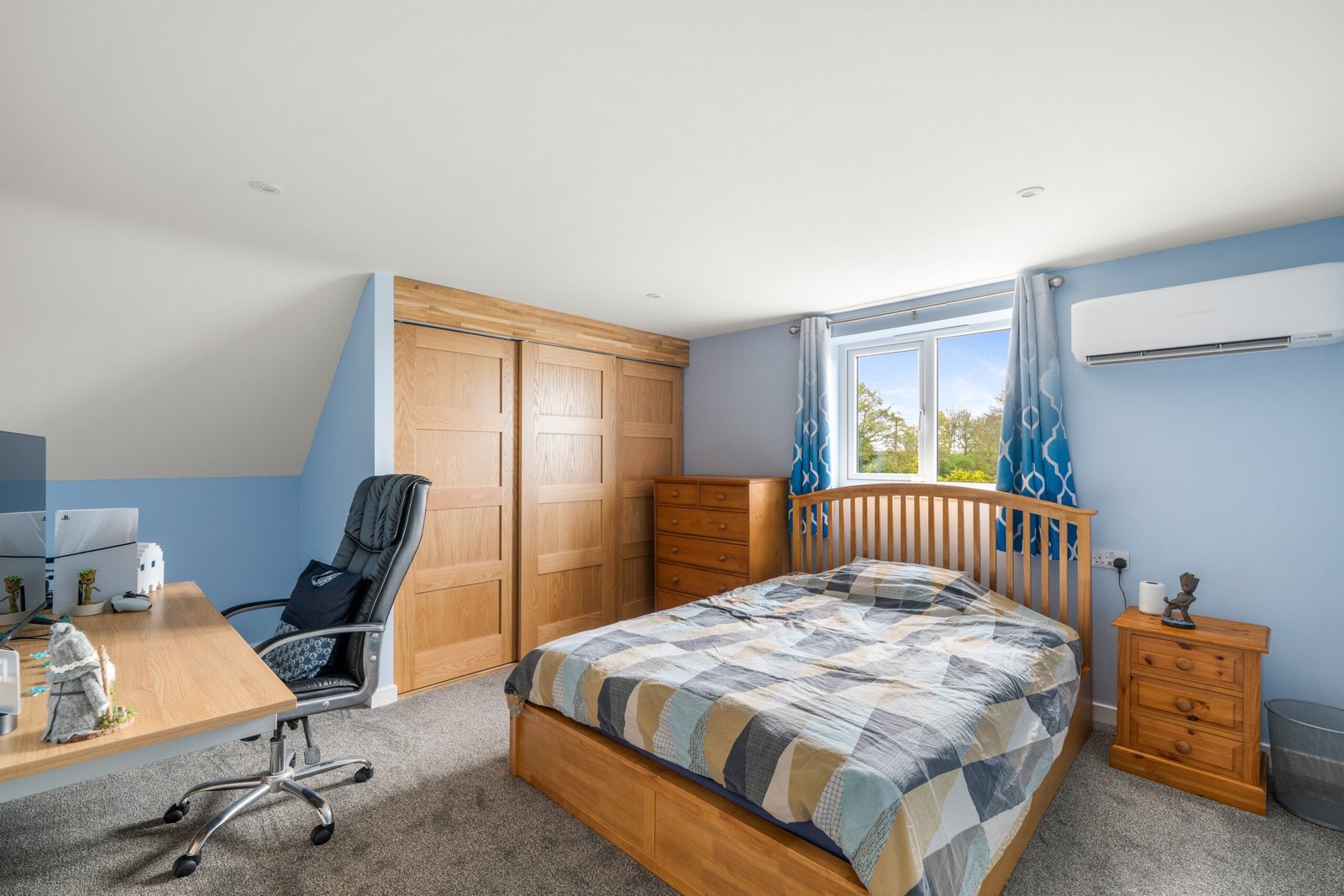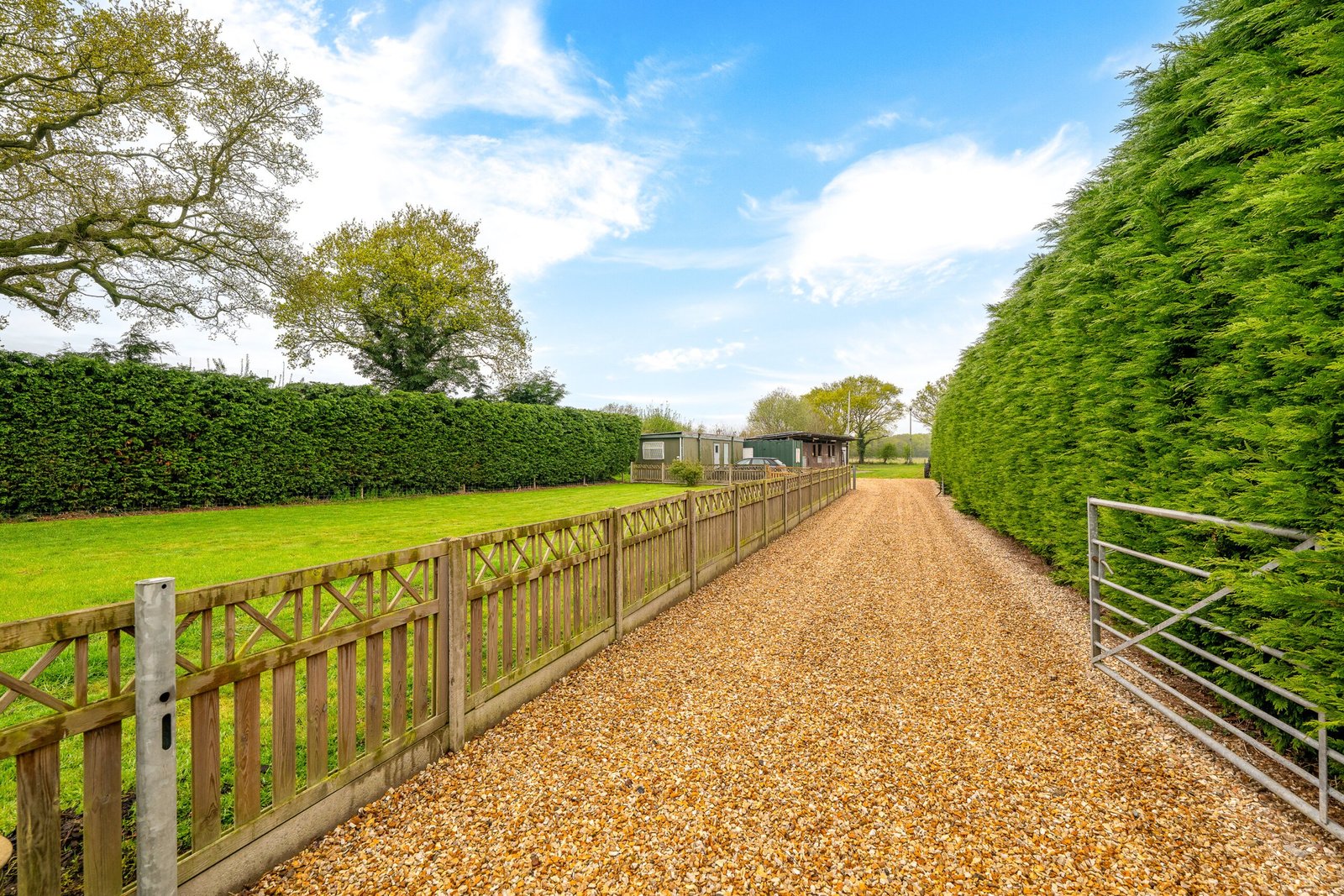 To the front the property has gated access to an extensive driveway which runs along the side of the property past the garage and to the stable block providing ample parking. To the rear is a generous fenced in lawned garden with paved patio, raised beds and a greenhouse. Beyond this is a stable block with solar panels and a further grassed area.