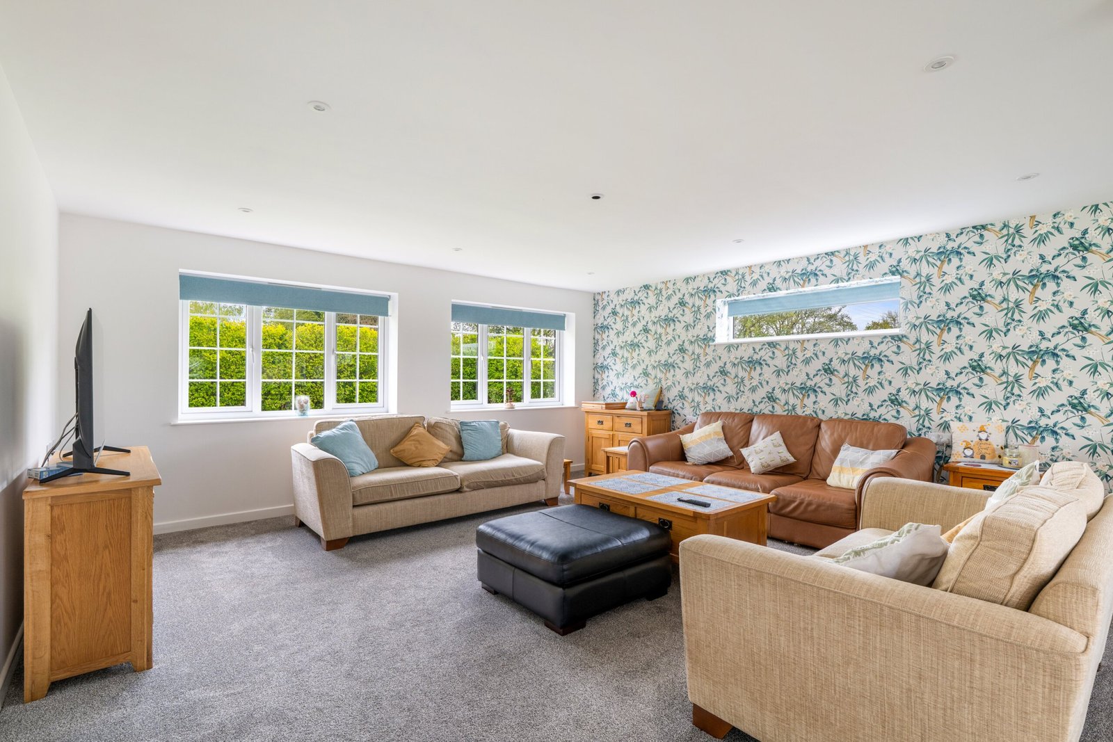 Outside an extensive driveway runs from the front along the side of the property to the bottom of the extensive garden. To the rear the property benefits from a generous enclosed lawned garden with patio, along with stable block and further grassed area