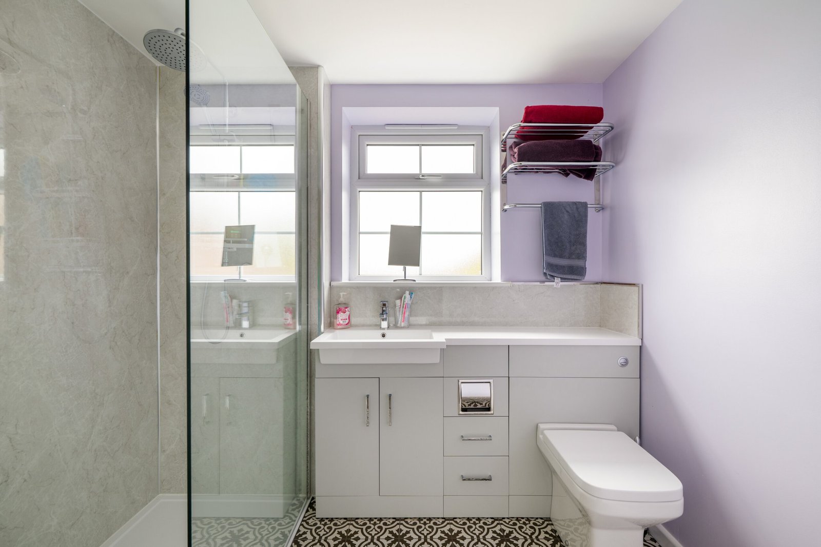 Double glazed window to side, walk in shower, vanity wash basin and WC units, underfloor heating.