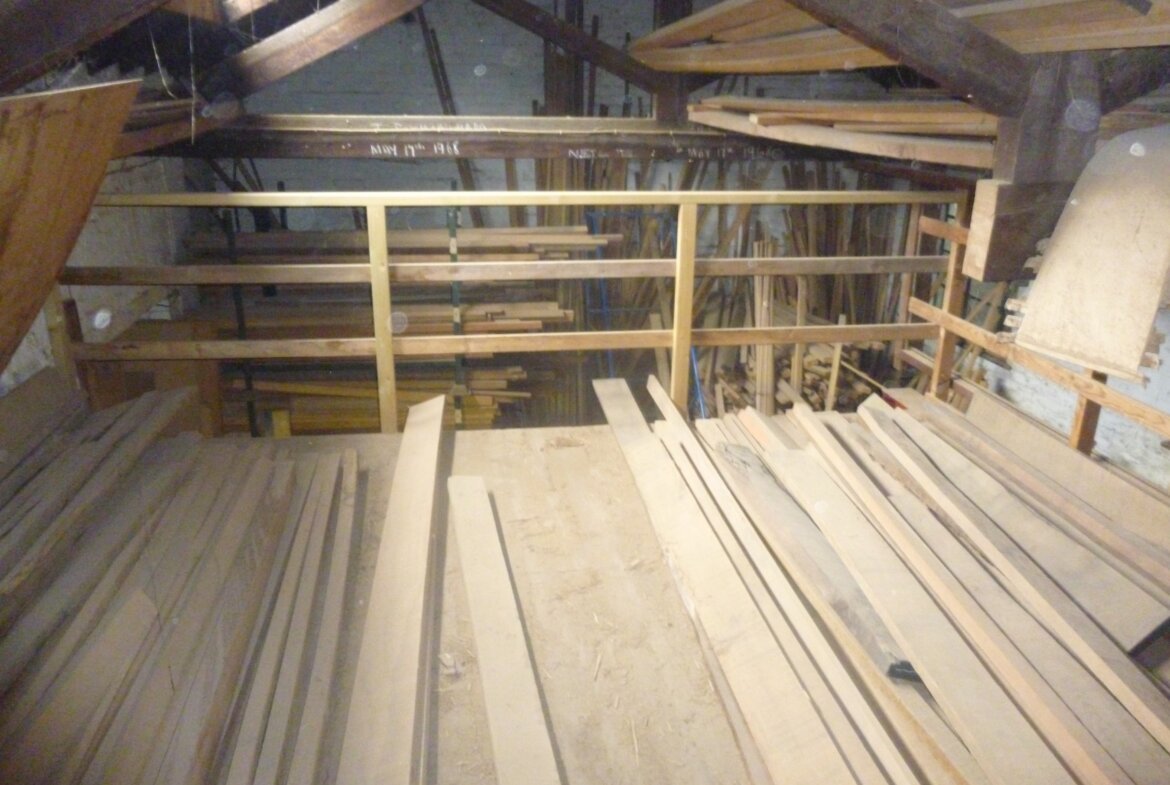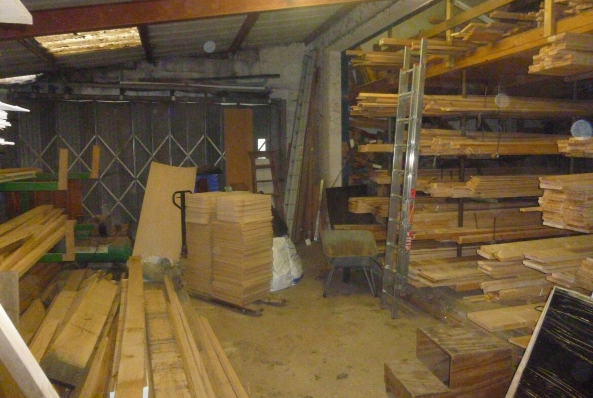 Wood store of 10.61m x 5.48m (34'10 x 17'110 with concertina metal door with a height of 2.50m (8'20) and a width of 3.56m (11'7).