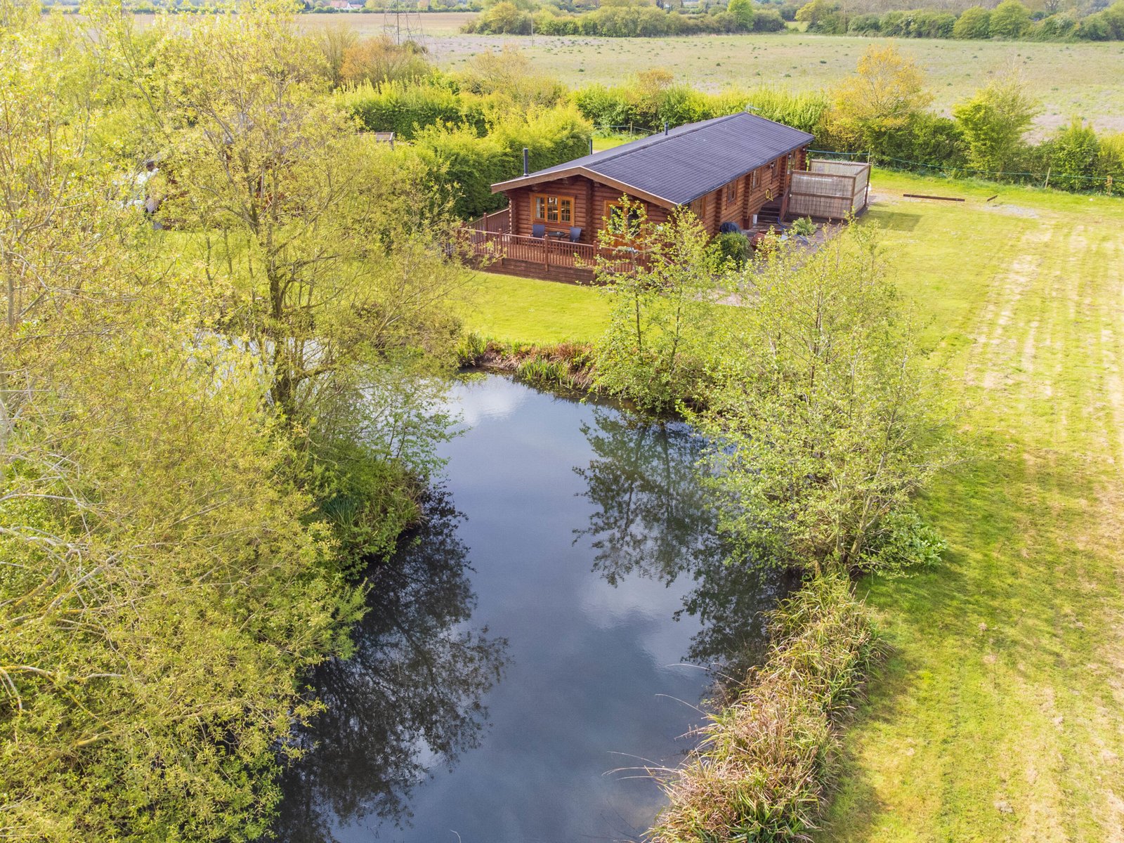 A well designed lodge development situated around a central wildlife lake with a perimeter access road and mature landscaping. Windmill has a total of seven 200mm round log Scandinavian style timber holiday lodges offering furnished self-catering accommodation. Each lodge has its own parking and private hot tub with views over the lake and open farmland beyond.
